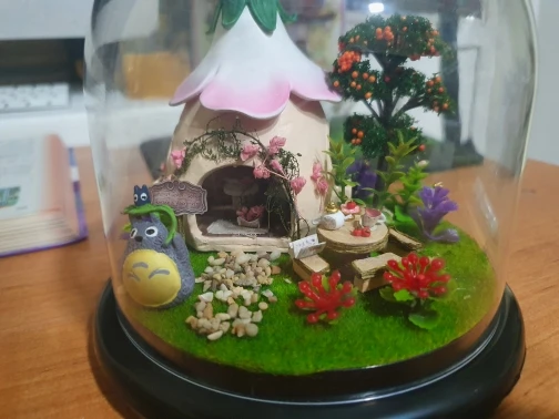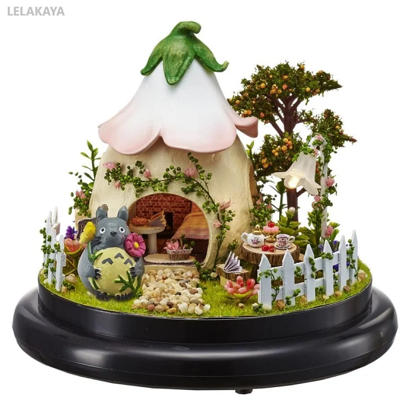 Кукольный мини-дом сделай сам Тоторо, маленький деревянный миниатюрный сборный Кукольный дом ручной работы, стеклянный шар, набор для украшения кукольного домика, зеленый сад