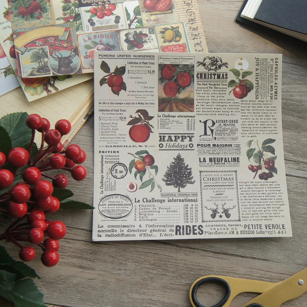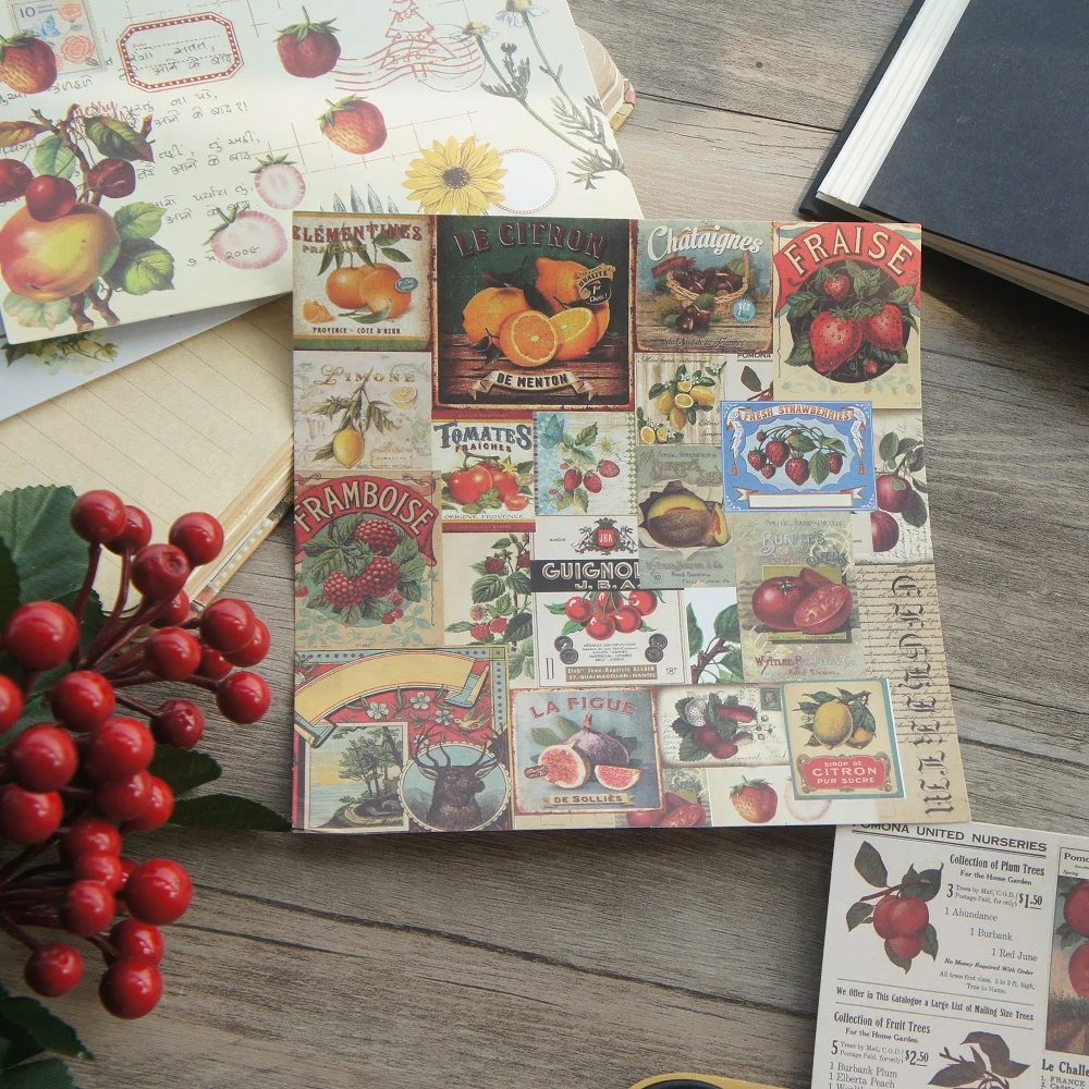 8 листовлот 16,5*16,5 см DIY Рождественская фруктовая ягода наклейка "Персик" дизайн упаковки Творческое Ремесло фон для альбома бумага
