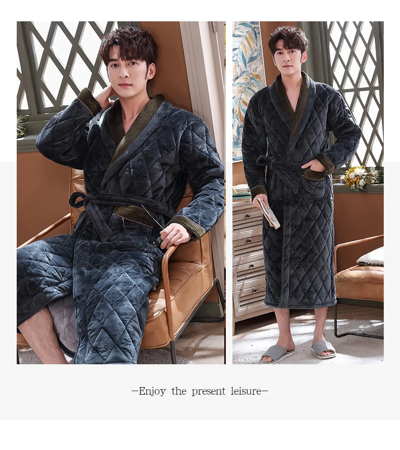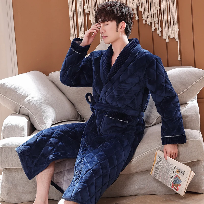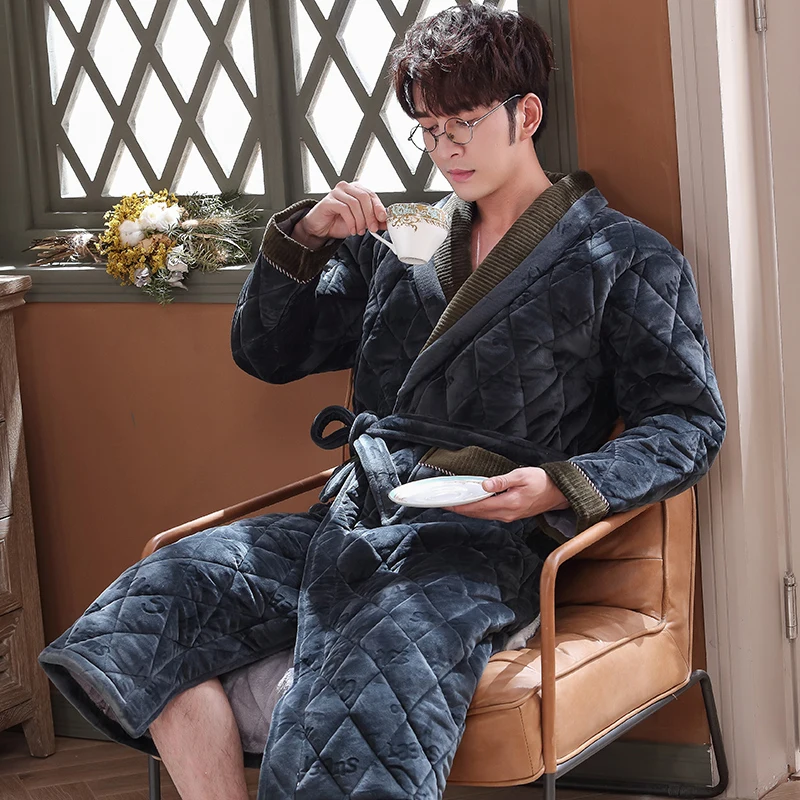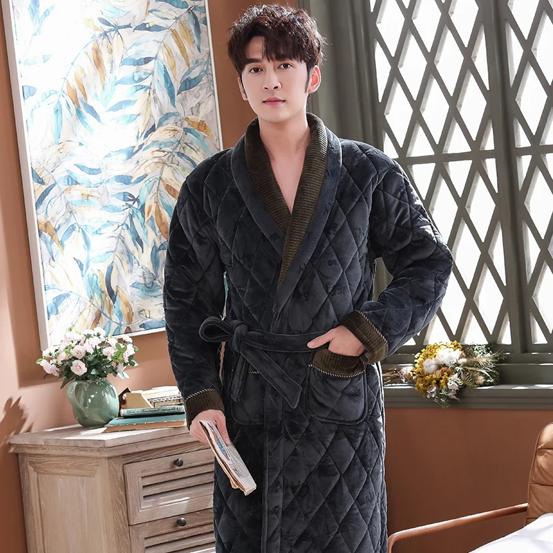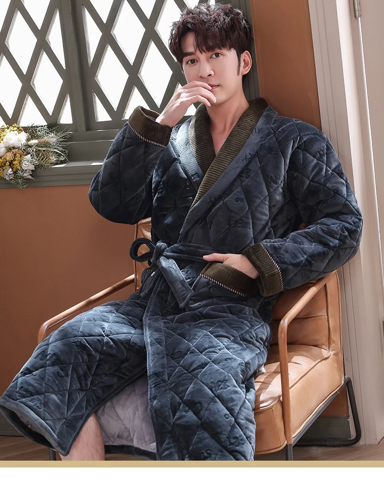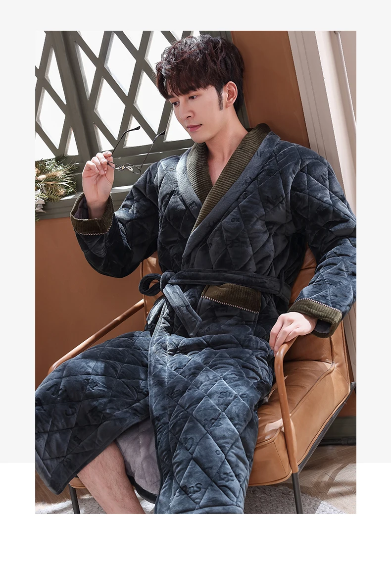 Мужской зимний жаккардовый халат с надписью, домашняя одежда, фланелевый стеганый Халат с длинными рукавами, мужской утепленный длинный банный халат, XXXL