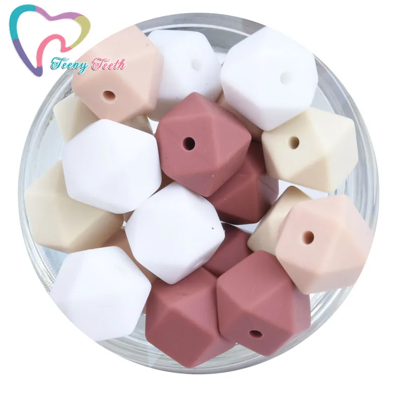 Бусины для прорезывания зубов, шестигранные, 14 мм, 20 шт., силиконовые, геометрические, детские бусы