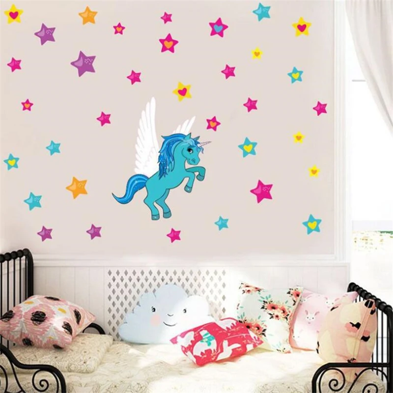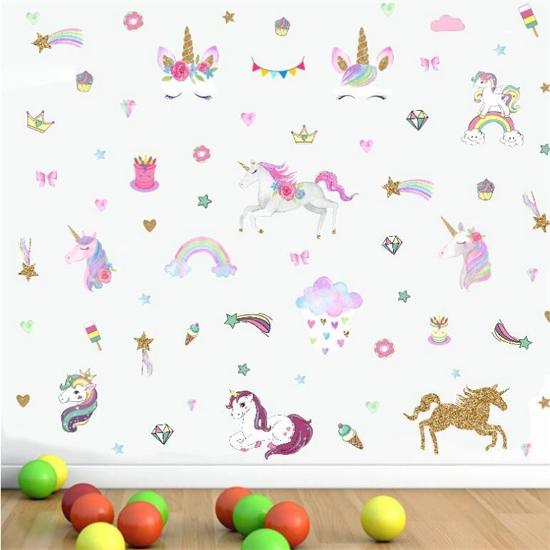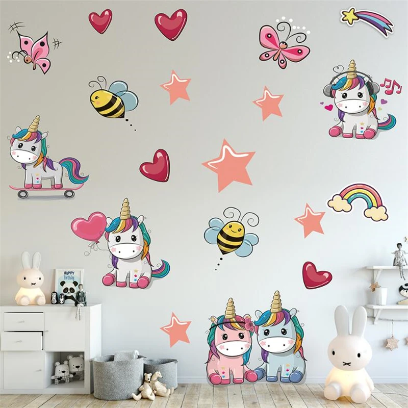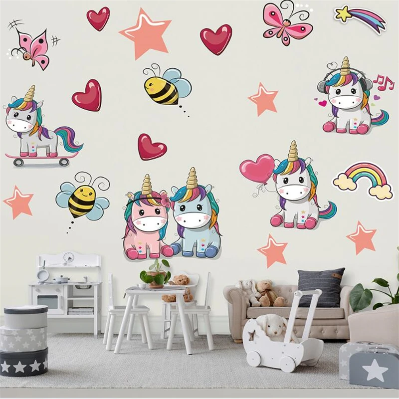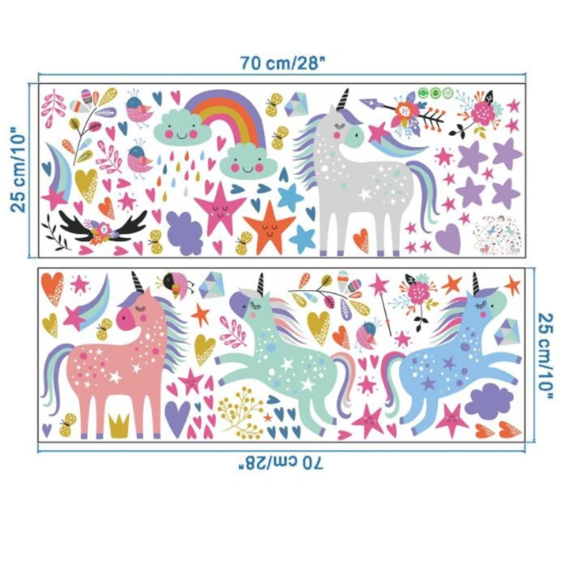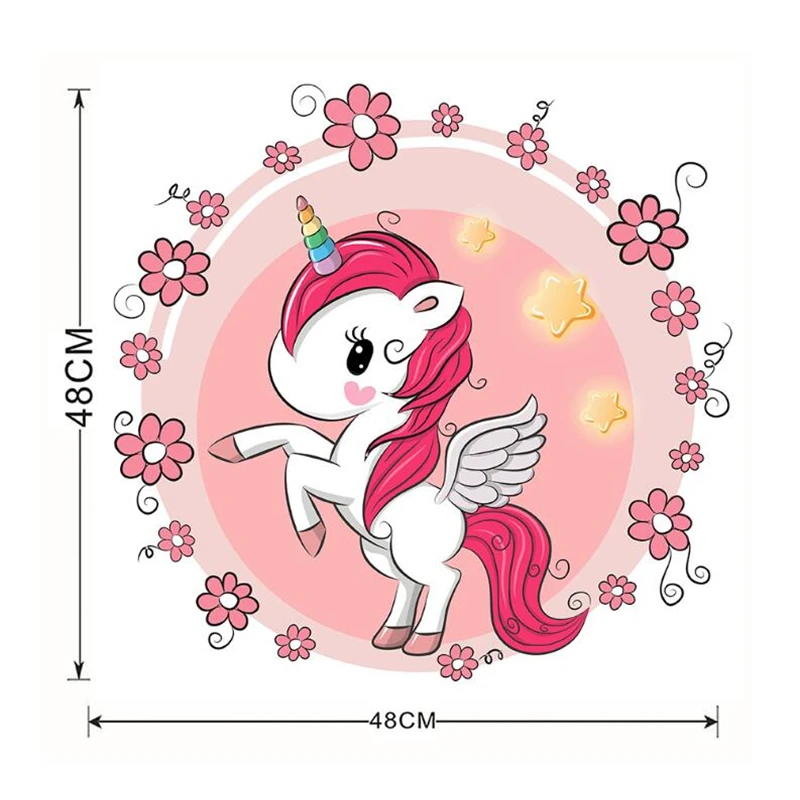 3D мультяшная Наклейка на стену в форме единорога настенная Фреска ...