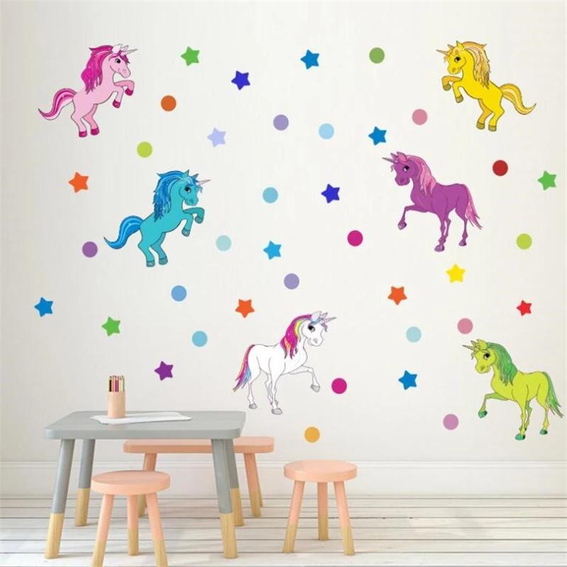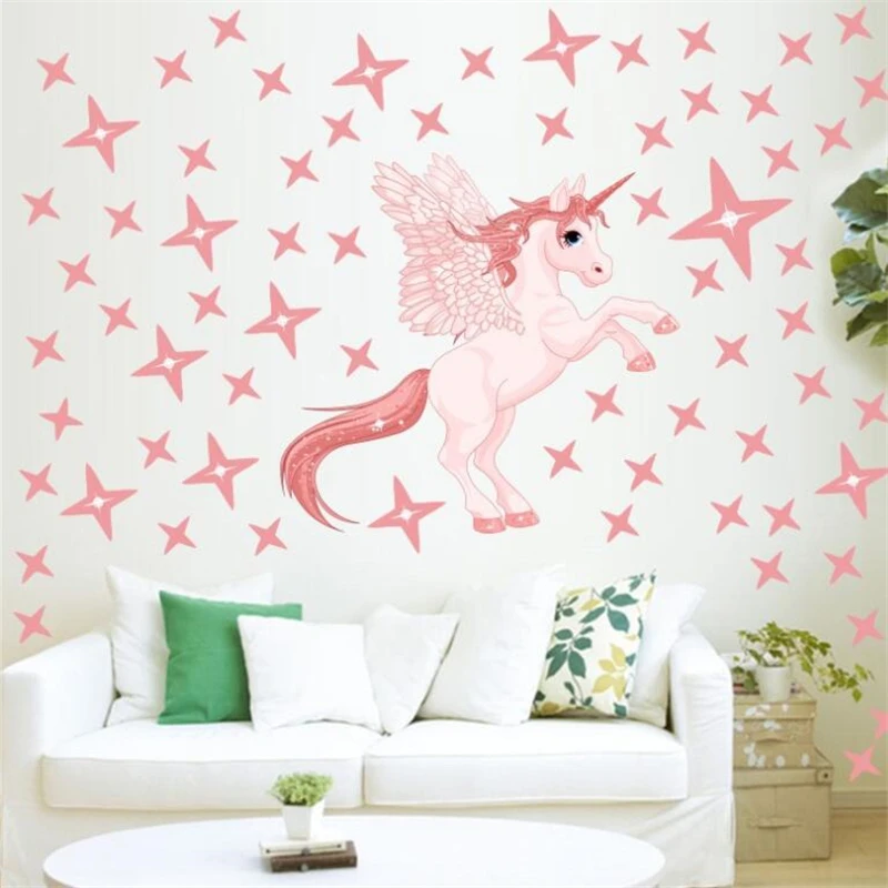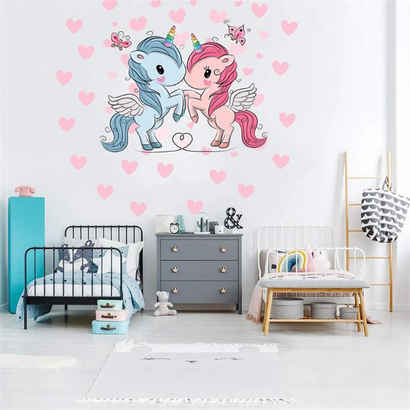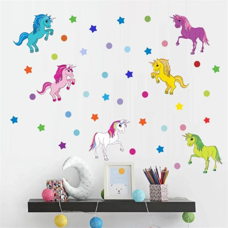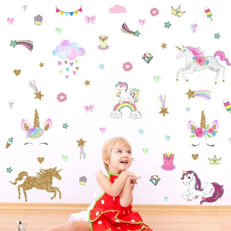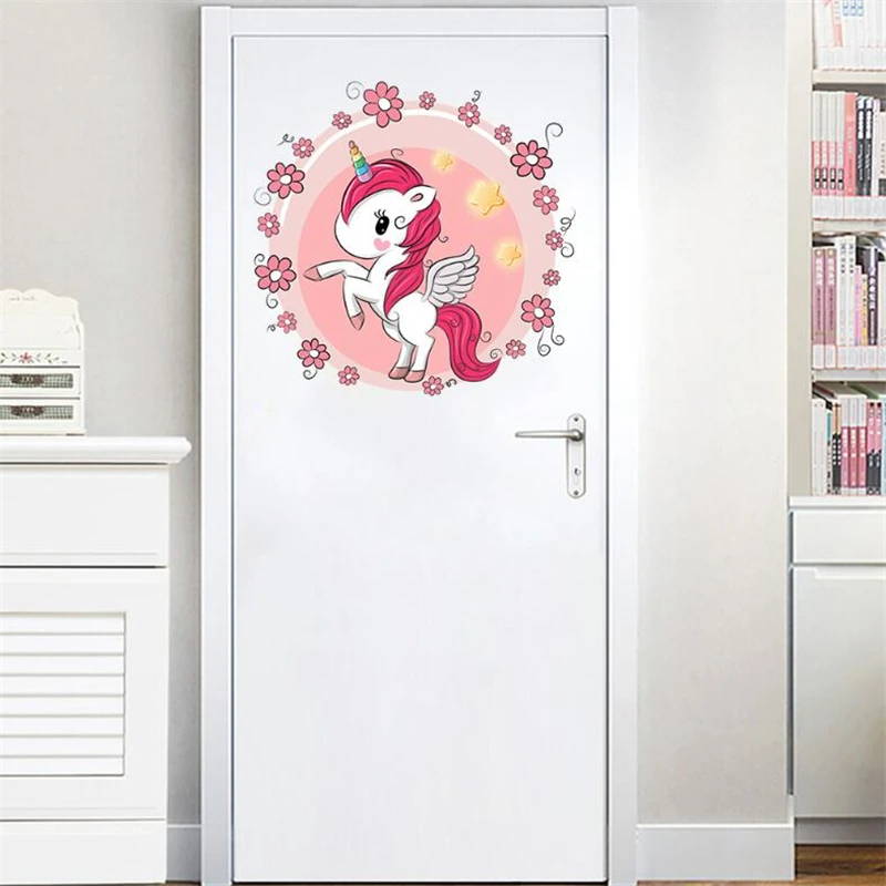3D мультяшная Наклейка на стену в форме единорога настенная Фреска ...