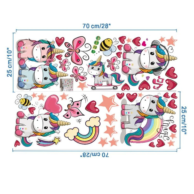3D мультфильм наклейка на стену в форме единорога искусство фреска ...