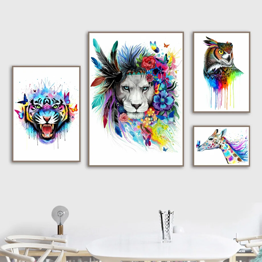 Постеры и принты в скандинавском стиле, многоцветные настенные картины на холсте с изображением Льва, лисы, совы, черепахи, детской комнаты, домашний декор
