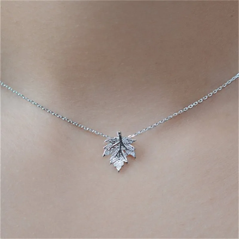 Ожерелье с подвеской в виде листа из нержавеющей стали
