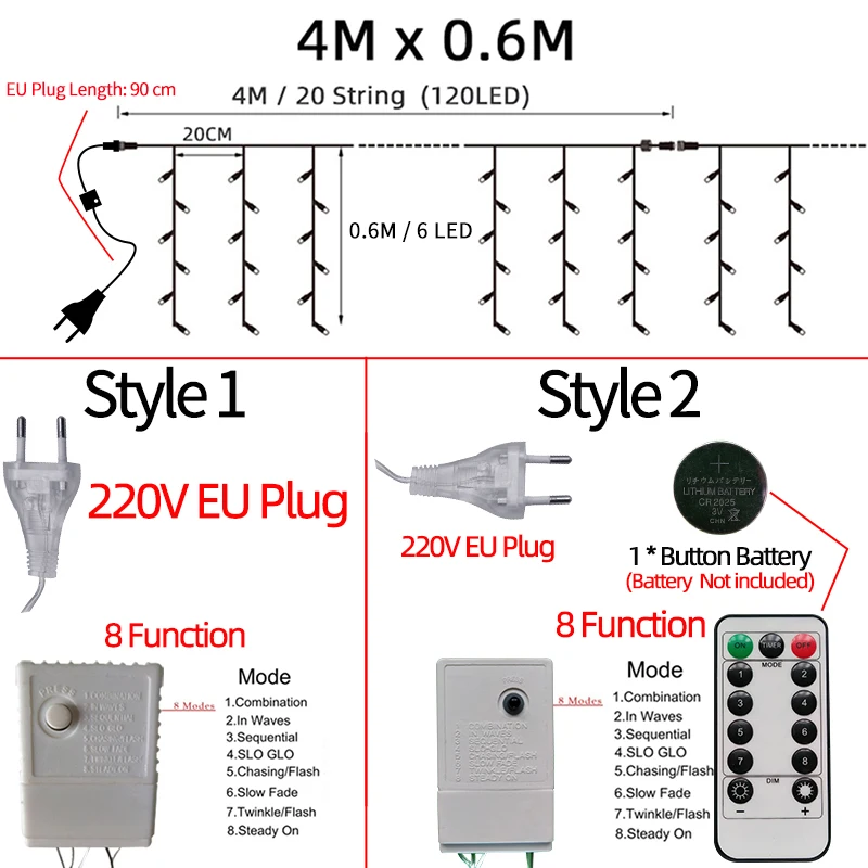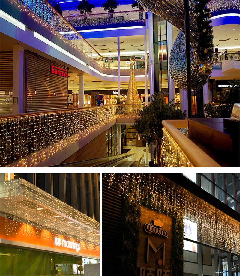 Рождественская светодиодная гирлянда в виде сосулек, 220 В, водонепроницаемая сказочная Гирлянда-занавеска, уличная Гирлянда для свадьбы, вечеринки, сада, новогодние украшения