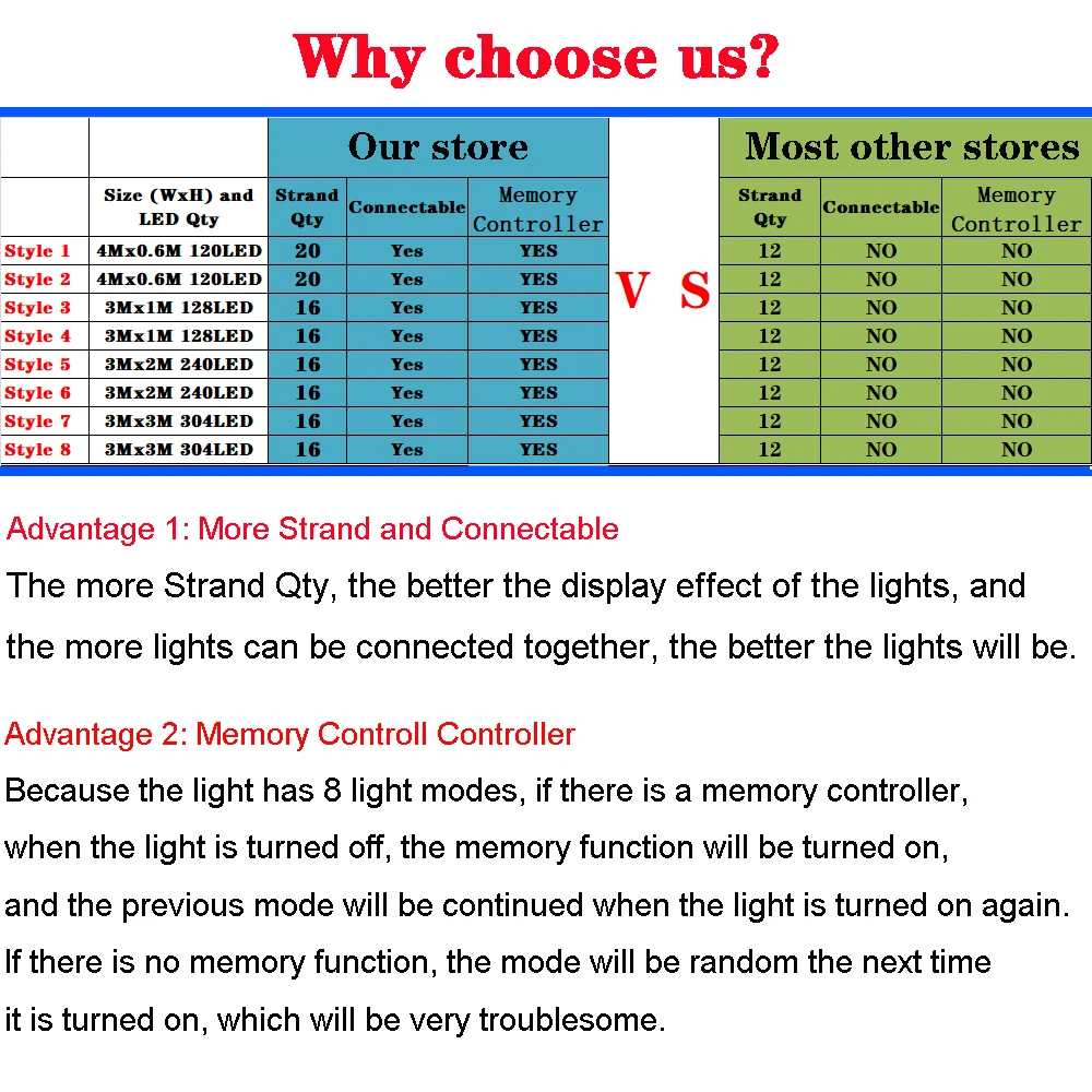 Преимущество 1: больше нитей и соединительныхЧем больше количество нитей, тем лучше эффект отображения света, иЧем больше ламп можно подключить вместе, тем лучше будет освещение. Преимущество 2: контроллер управления памятьюПотому что светильник имеет 8 светильник режимов при возникновении какой-либо контроллер памяти,Когда светильник выключен, функция памяти будет включена,И предыдущий режим будет продолжен, когда светильник снова включится.Если функция памяти отсутствует, режим будет выбран случайным образом в следующий разОн включен, что будет очень хлопотным.В1: Могу ли я подключить различные огни вместе?