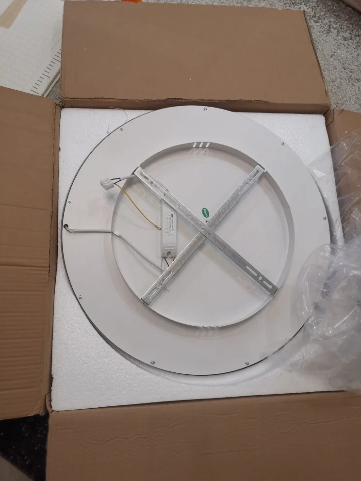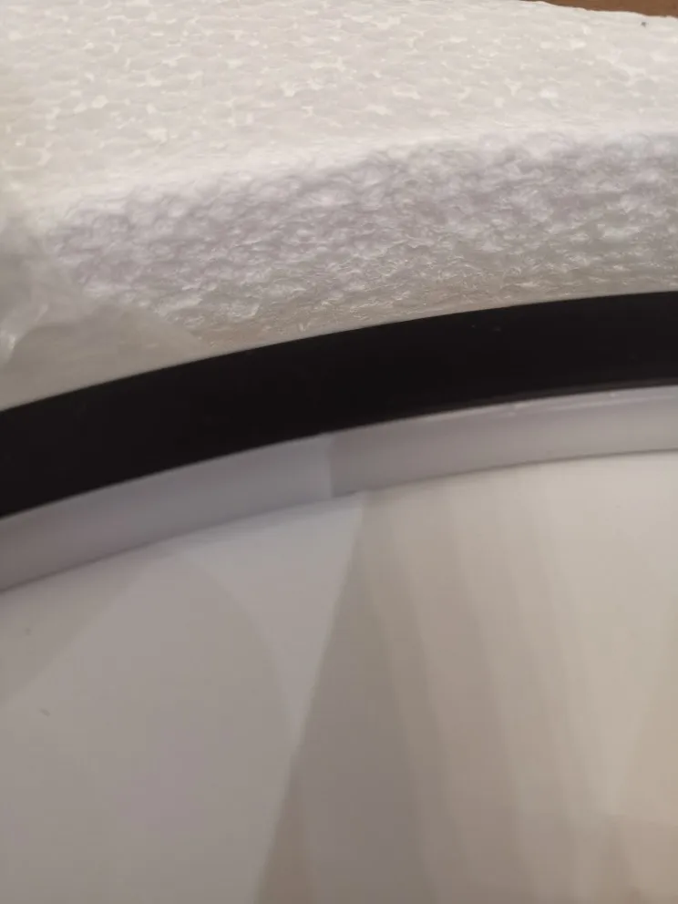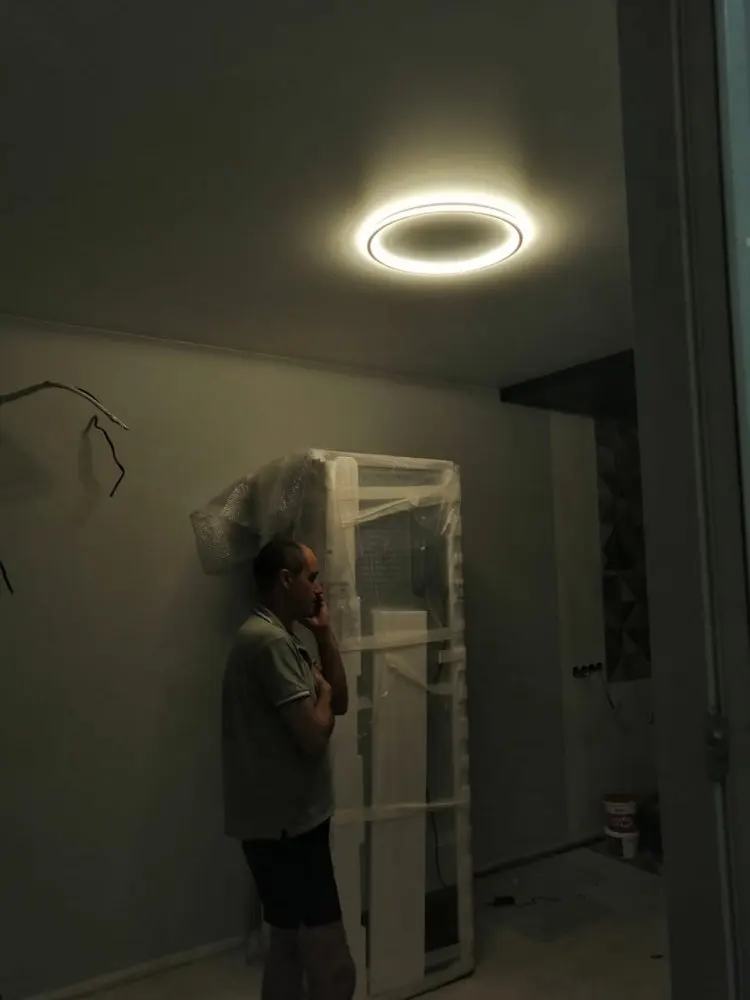 Светильник выглядит отлично , все работает , качество хорошее , пришло все целое . когда монтировали получилось сделать в поверь с потолком , выглядит как просто кольцо , оооочень классно .