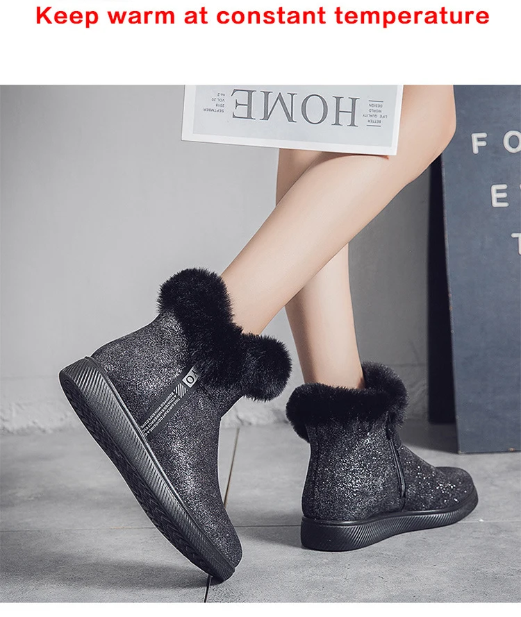 2019 зимняя теплая обувь, женские зимние ботинки на платформе с блестками, плюшевые модные женские ботинки, женские меховые ботильоны, блестящие ботинки