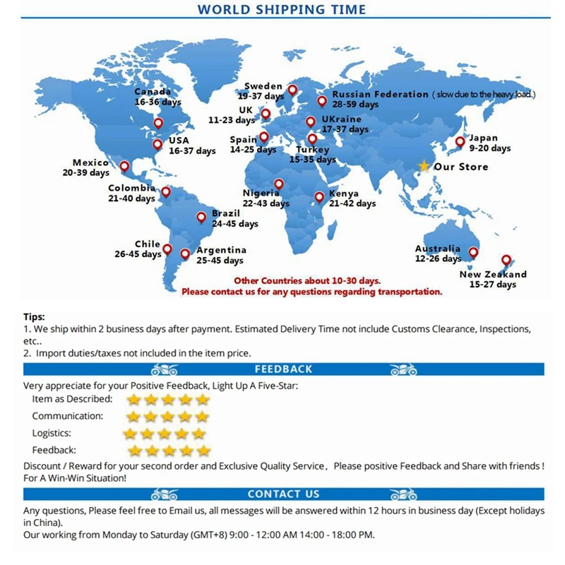 4. Ваш счастливый опыт покупок и пять звезд отзывы очень важны для нас. Пожалуйста, не стесняйтесь обращаться к нам, если у вас есть какие-либо вопросы. Мы сделаем все возможное, чтобы служить вам.