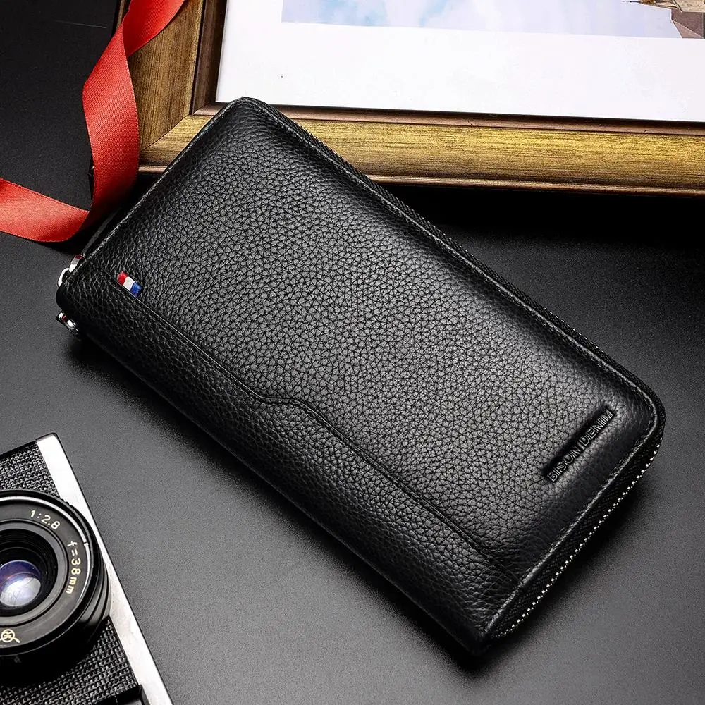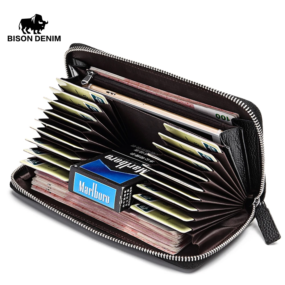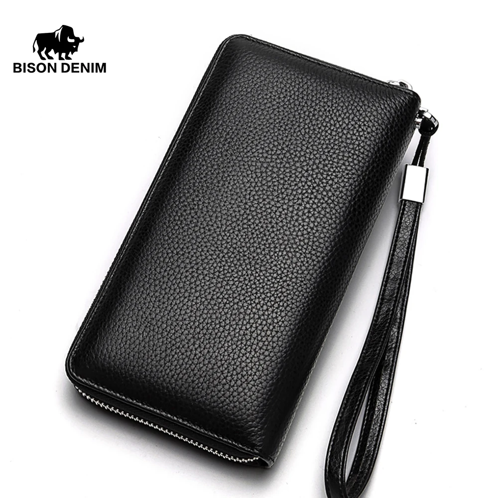 Мужской кошелек-клатч BISON DENIM, черный вместительный кошелек из натуральной кожи, с отделениями для кредитных карт, 2019