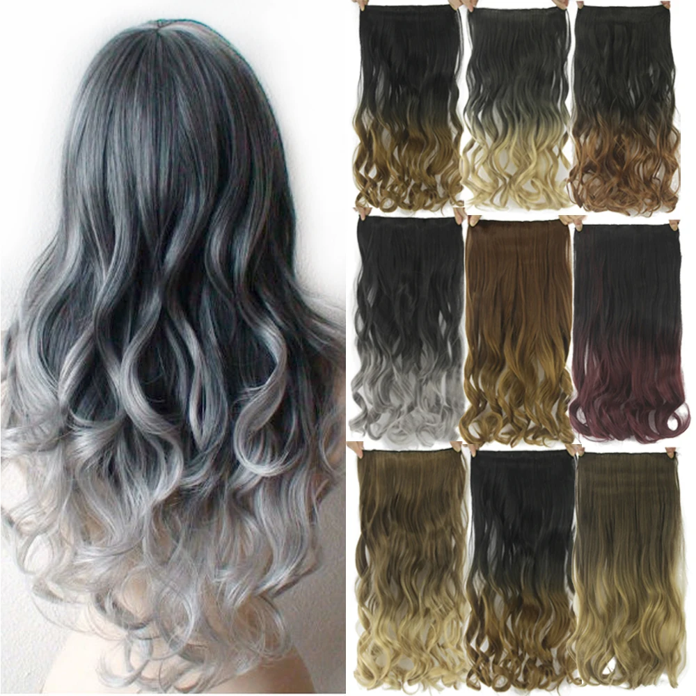 Soowee 60 см длинные черные до серые кудрявые синтетические волосы Омбре волосы на заколках для наращивания искусственные Заколки для женщин