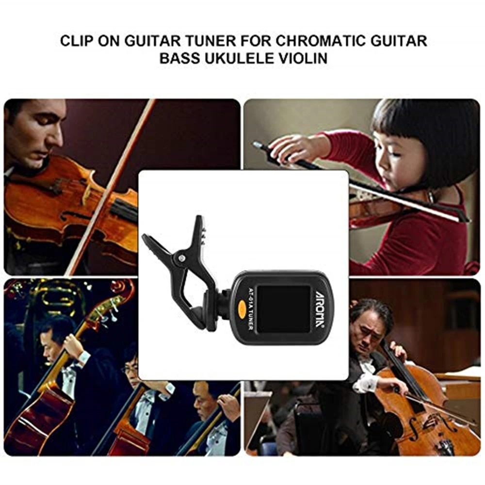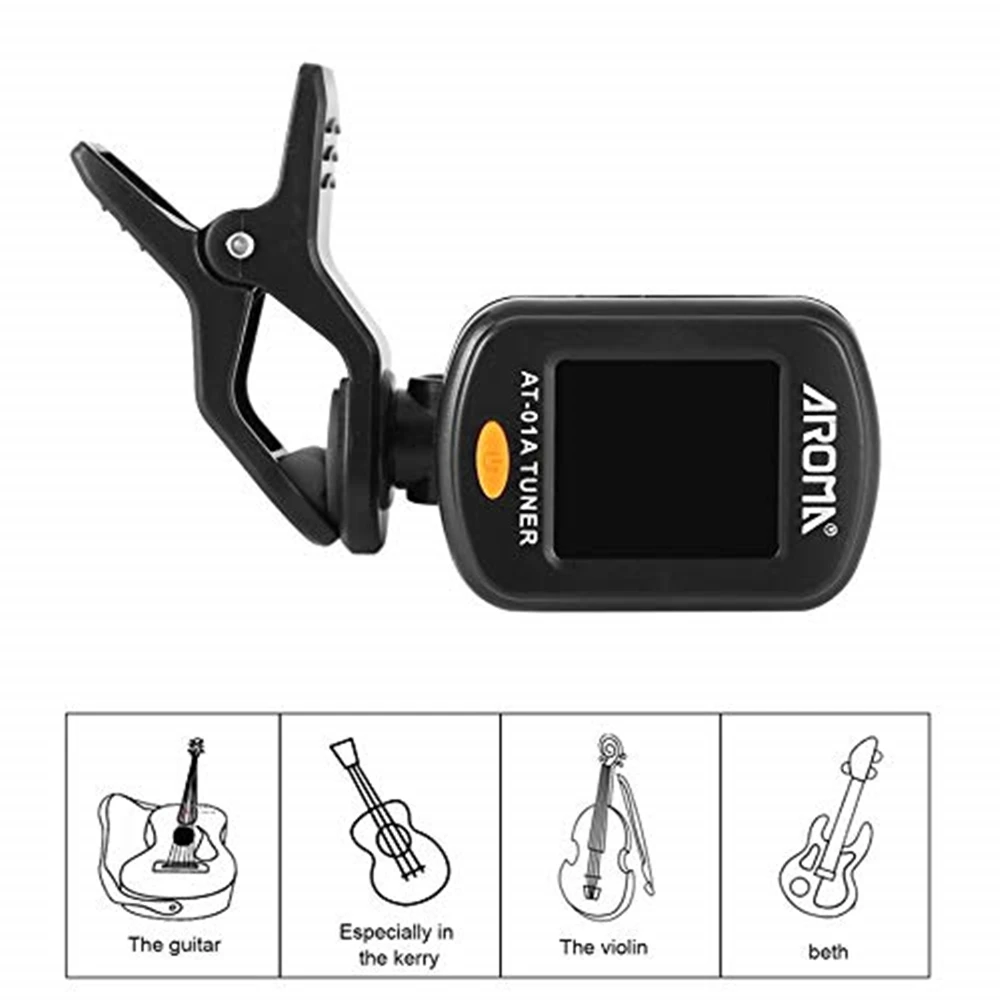 Арома AT-01A складной клип-на гитарный тюнер Вращающийся Универсальный ЖК-дисплей для хроматической гитары бас Гавайские гитары аксессуары
