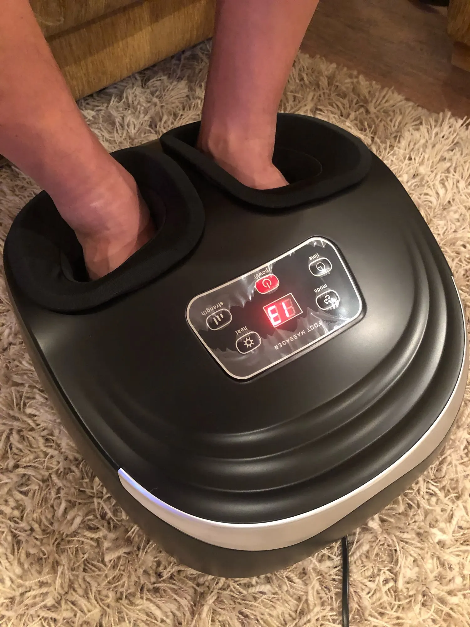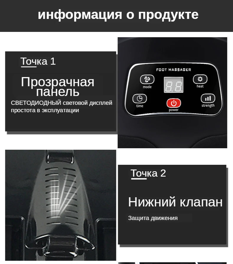 замечательный массажор! пользуемся всей семьёй! хорошо массирует стопы, есть режимы вакуумного сжатия в трёх вариантах! кто боится что усилия агрегата будут слабыми, не переживайте! сжимает, ещё как! на третьем самом сильном режиме, мы ещё даже не решились попробовать - хватает предыдущих двух! есть режимы с обогревом! довольны очень! продавца рекомендуем!