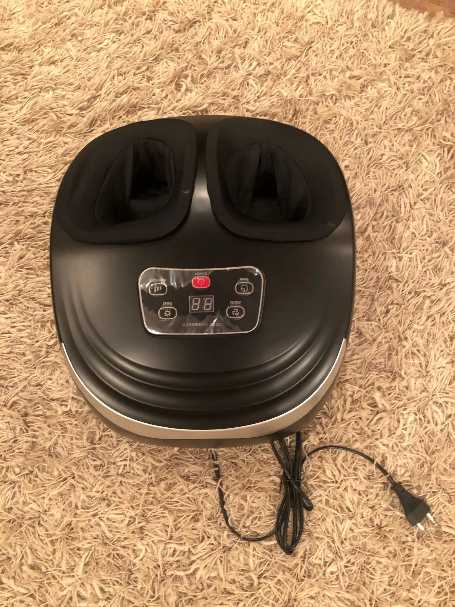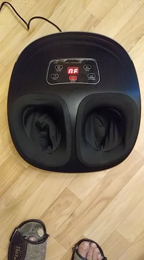 Массажер понравился. Заказывала 11.11, СДЭК привез домой уже 15.11 (СПб). Все работает. Правда по началу всунула ноги без носков и было прям больно. Подогрев работает, сначала думала, что нет, но потрогала рукой - греет. Режимы пока не пробовала. Очень хорошо разминает стопу. Ни разу не пожалела о покупке.