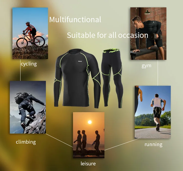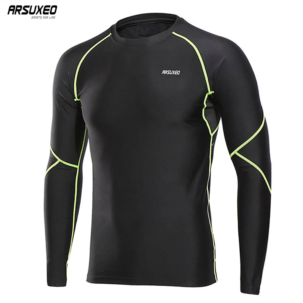 ARSUXEO мужские зимние теплые флисовые беговые колготки, теплые компрессионные тренировочные футболки, велосипедные базовые слойные спортивные рубашки U81