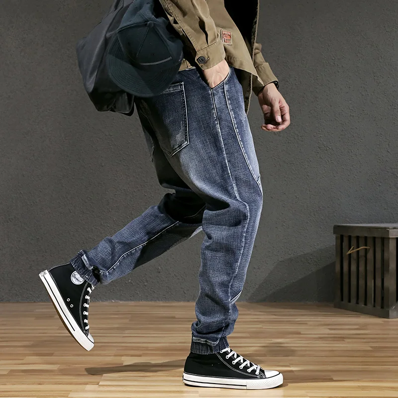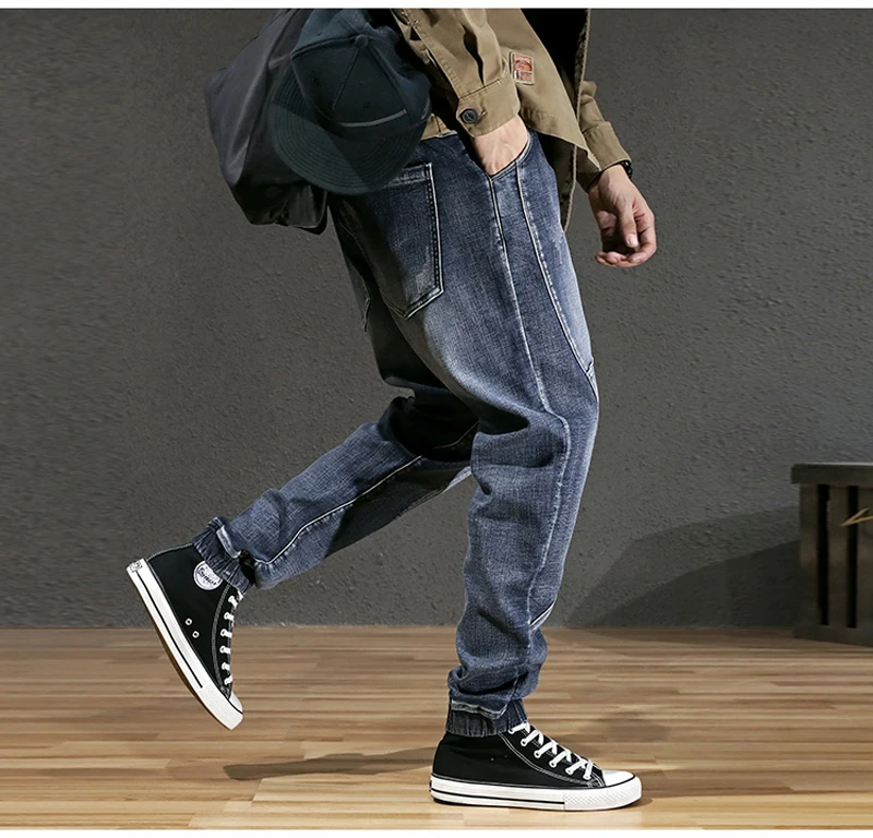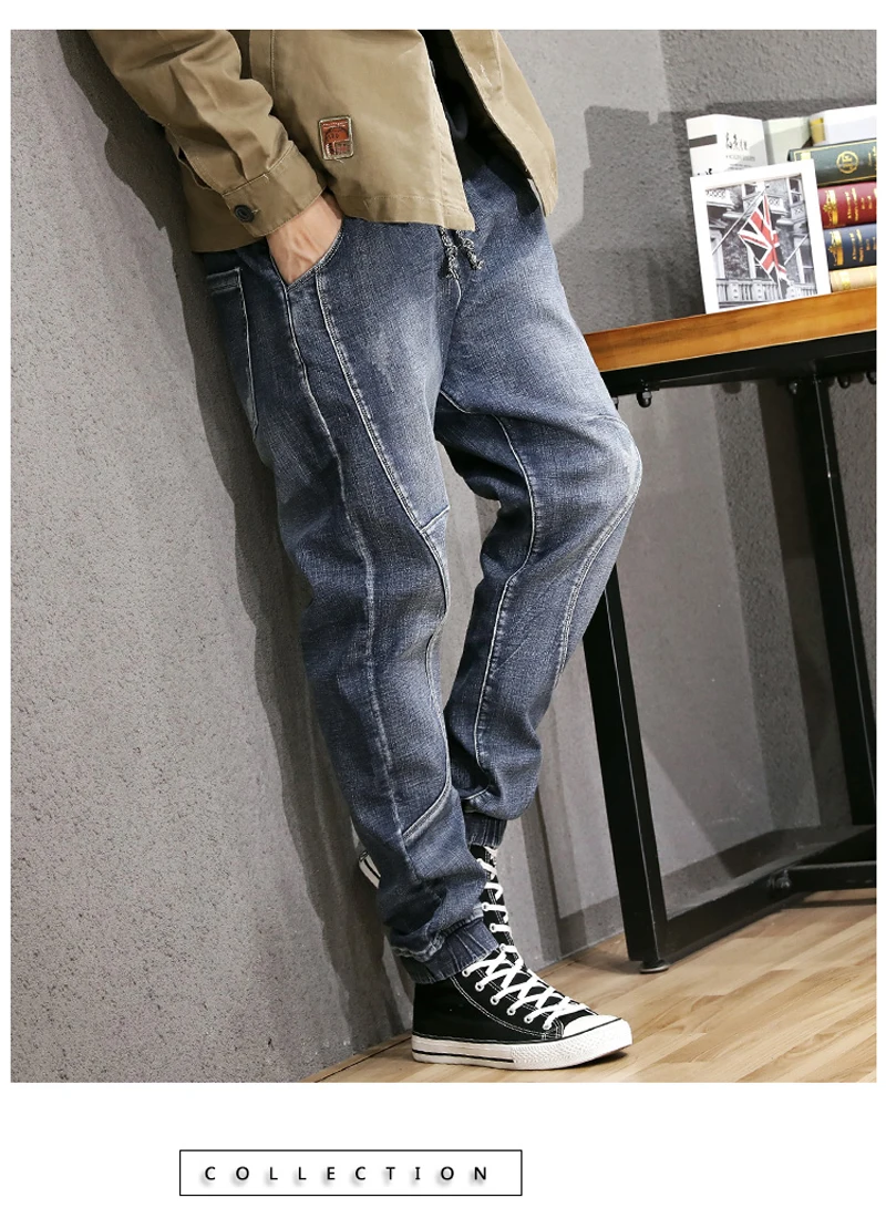Джинсы мужские свободного покроя, дизайнерские брюки-султанки со сращением, бархатные теплые джинсы, Джоггеры в стиле хип-хоп, Осень-зима