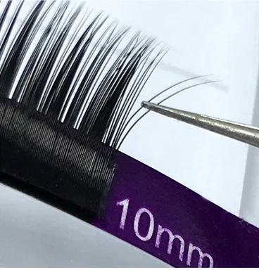 5. Используйте один пинцет, отделяющий натуральные ресницы, другой пинцет, чтобы удерживать кончик ресниц, и окуните конец в клей, затем нанесите на натуральные ресницы.