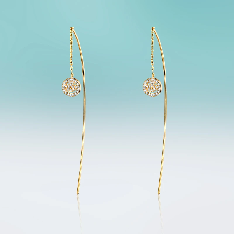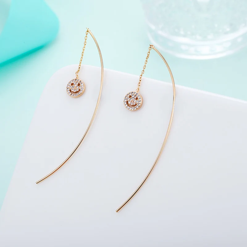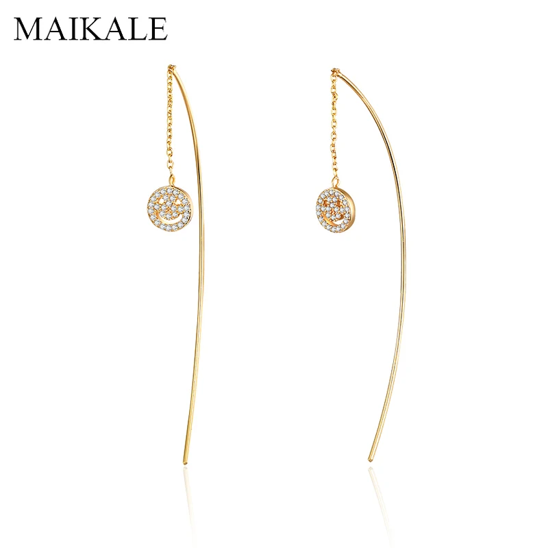 MAIKALE с милым рисунком в виде улыбающихся рожиц; Цирконием Висячие серьги для женщин золото/серебряная Ушная линии металлический стержень из нержавеющей стали с длинной, для вечеринки, ювелирное изделие для девочек Подарки