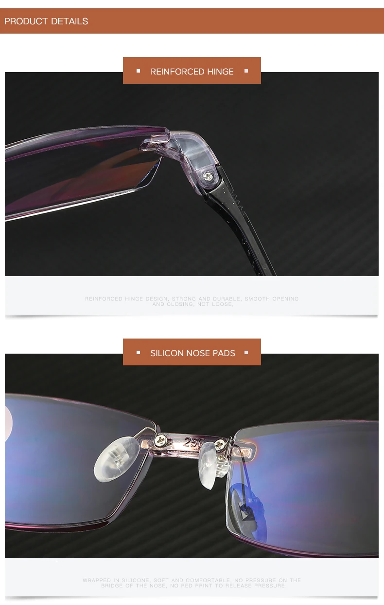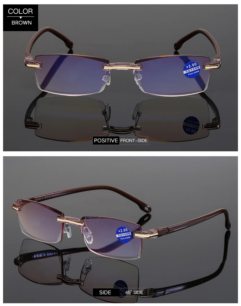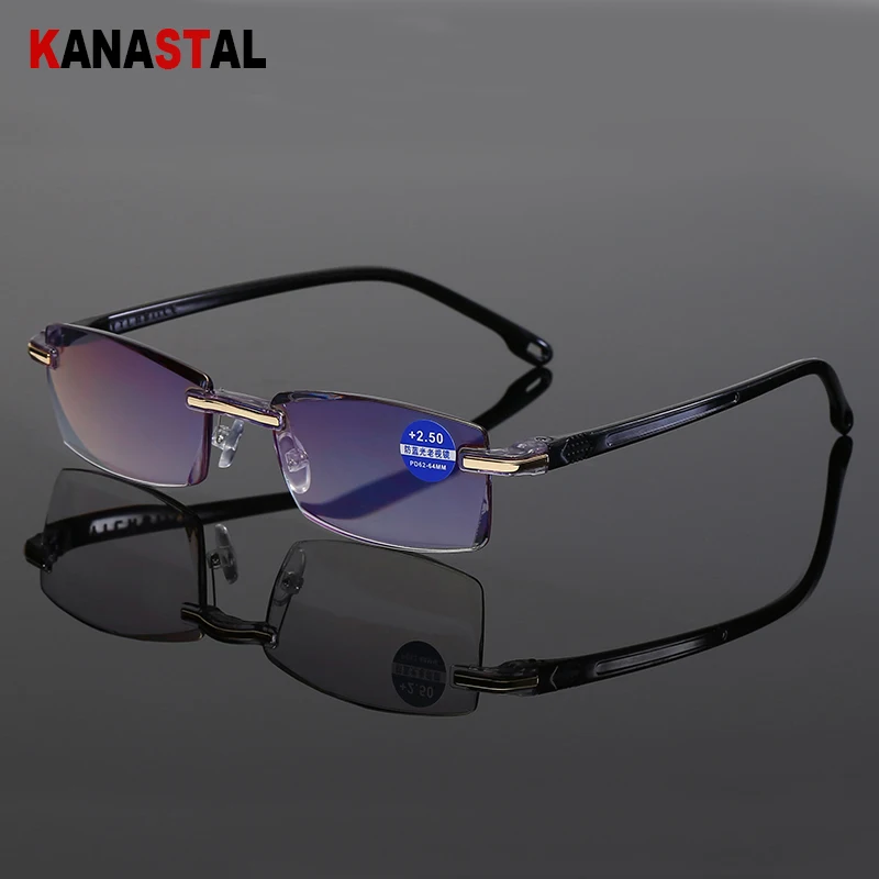 Очки для чтения без Оправы унисекс, с фильтром синего цвета, для работы за компьютером, для чтения при пресбиопии, для пожилых людей