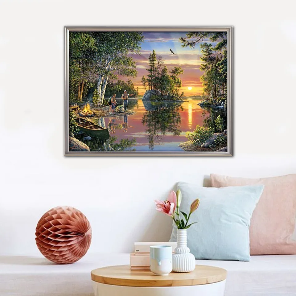 5D алмазная вышивка сделай сам, пейзаж, алмазная живопись, закат, п...