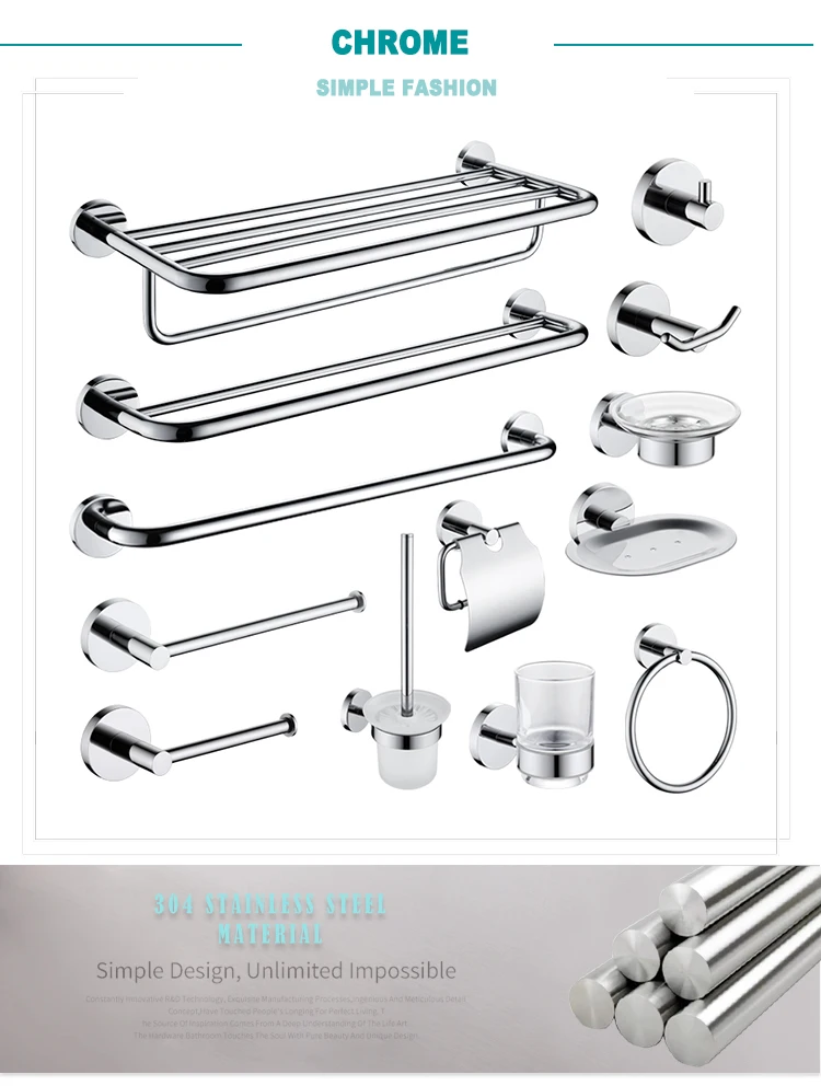 Особенности и характеристики:Набор аксессуаров для ванной комнатыВешалка для полотенец/полотенцесушитель/кольцо для полотенец/туалетная щетка/держатель для бумаги/мыльница/стакан и держатель для чашек/Крючок для халатаМатериал: Прочная нержавеющая сталь SUS 304Использование: ванная комната/душевая комната/туалетОтделка: высококачественное хромированное покрытиеТип: аксессуары для ванной комнатыУстановка: НастенныйВключая все монтажные фитинги