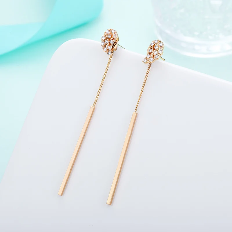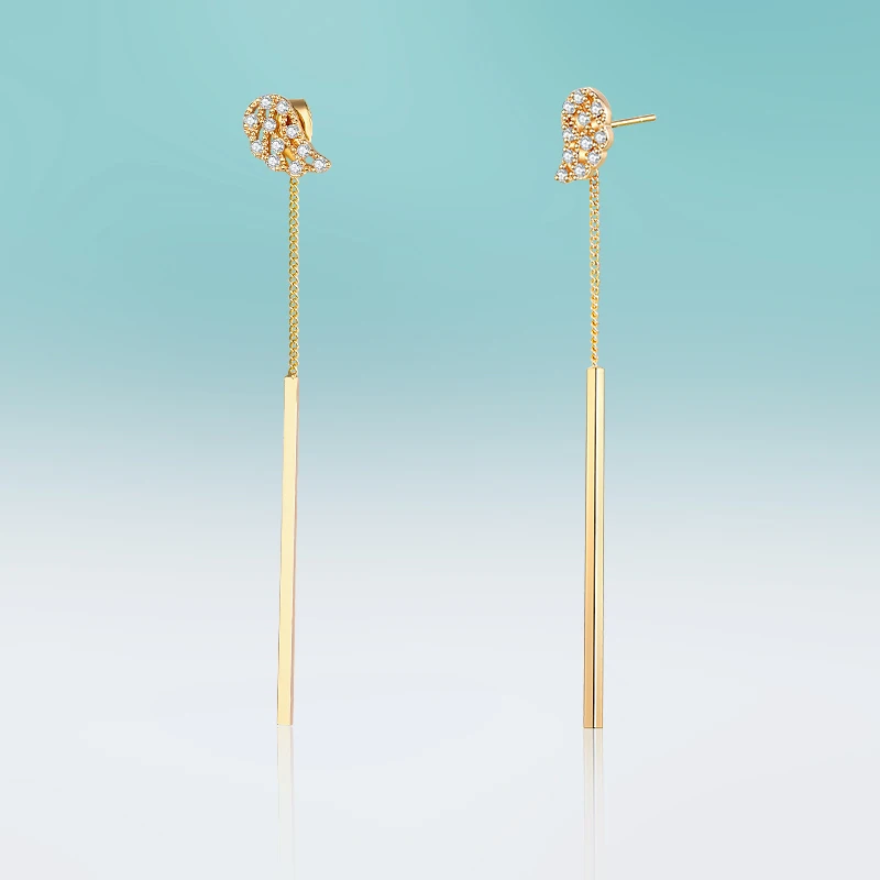 Женские серьги в форме крыльев MAIKALE, золотистые длинные висячие серьги с цепочкой, металлический стержень, Ювелирное Украшение для вечерние