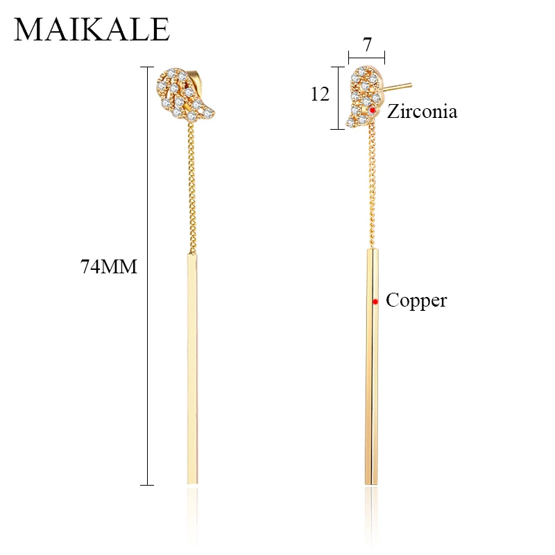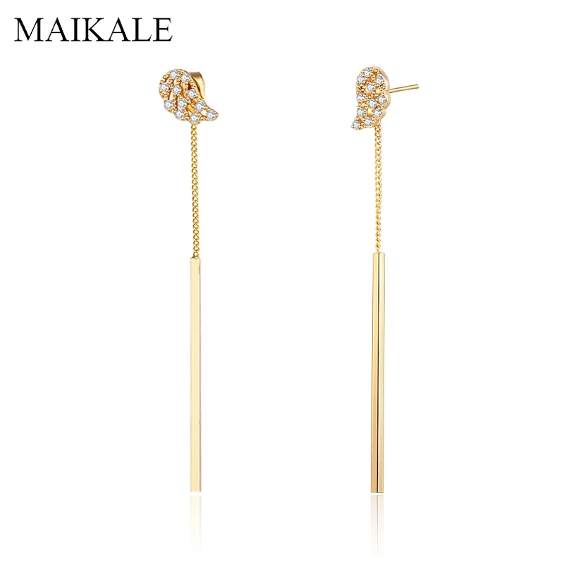 Женские длинные серьги MAIKALE с цирконием в форме крыла, Золотая и серебряная цепочка, металлический стержень, висячие серьги, украшения для вечерние, подарки