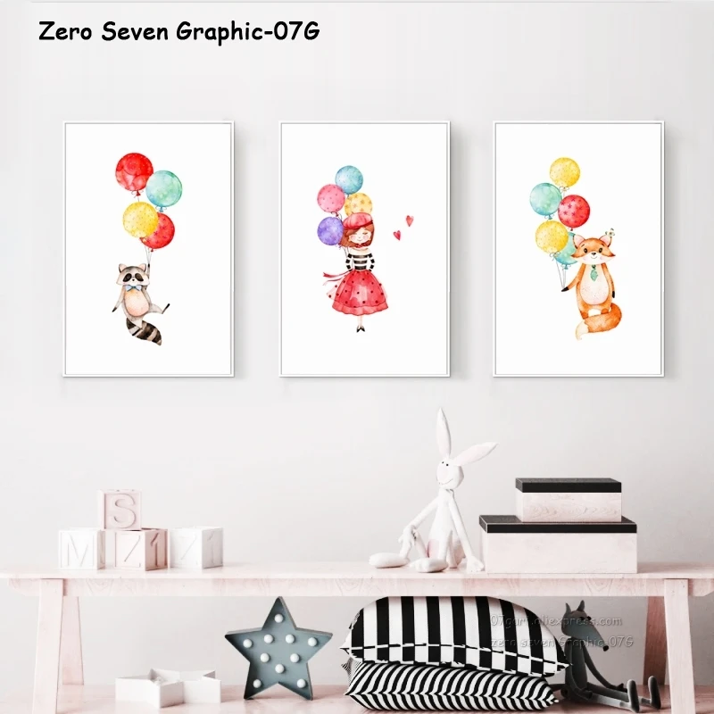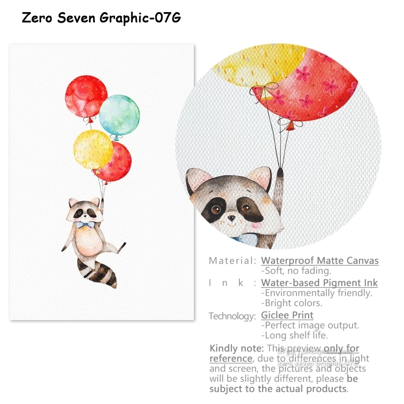 Плакат на холсте, акварельный, мультяшный, ручная роспись, Маленький Енот, велосипед, удерживает воздушный шар, настенные картины для фотографий