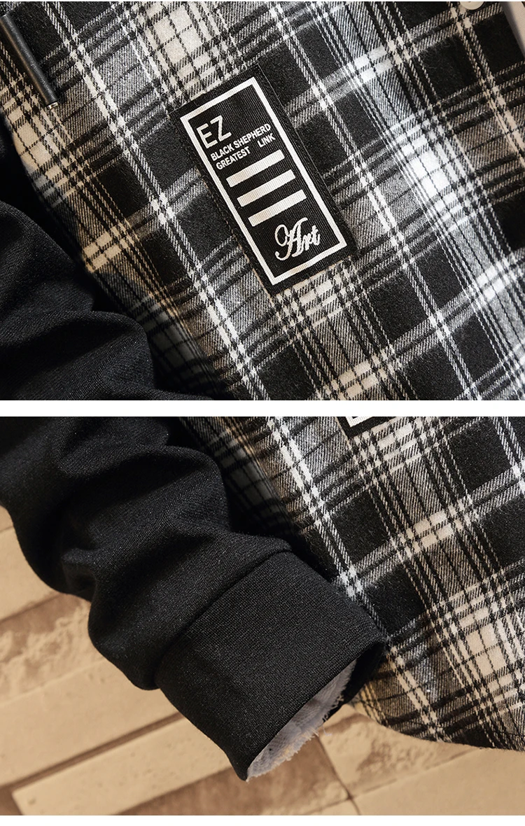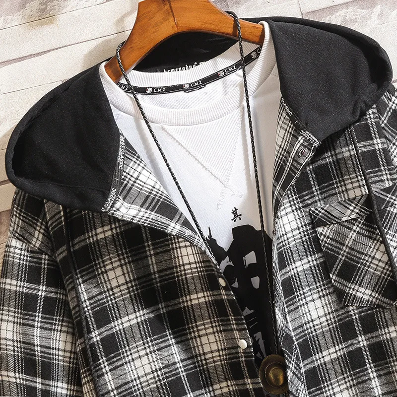 Рубашка мужская с капюшоном, клетчатая сорочка с длинными рукавами, модная Свободная Повседневная Уличная одежда из двух предметов, размера плюс, осень 2019