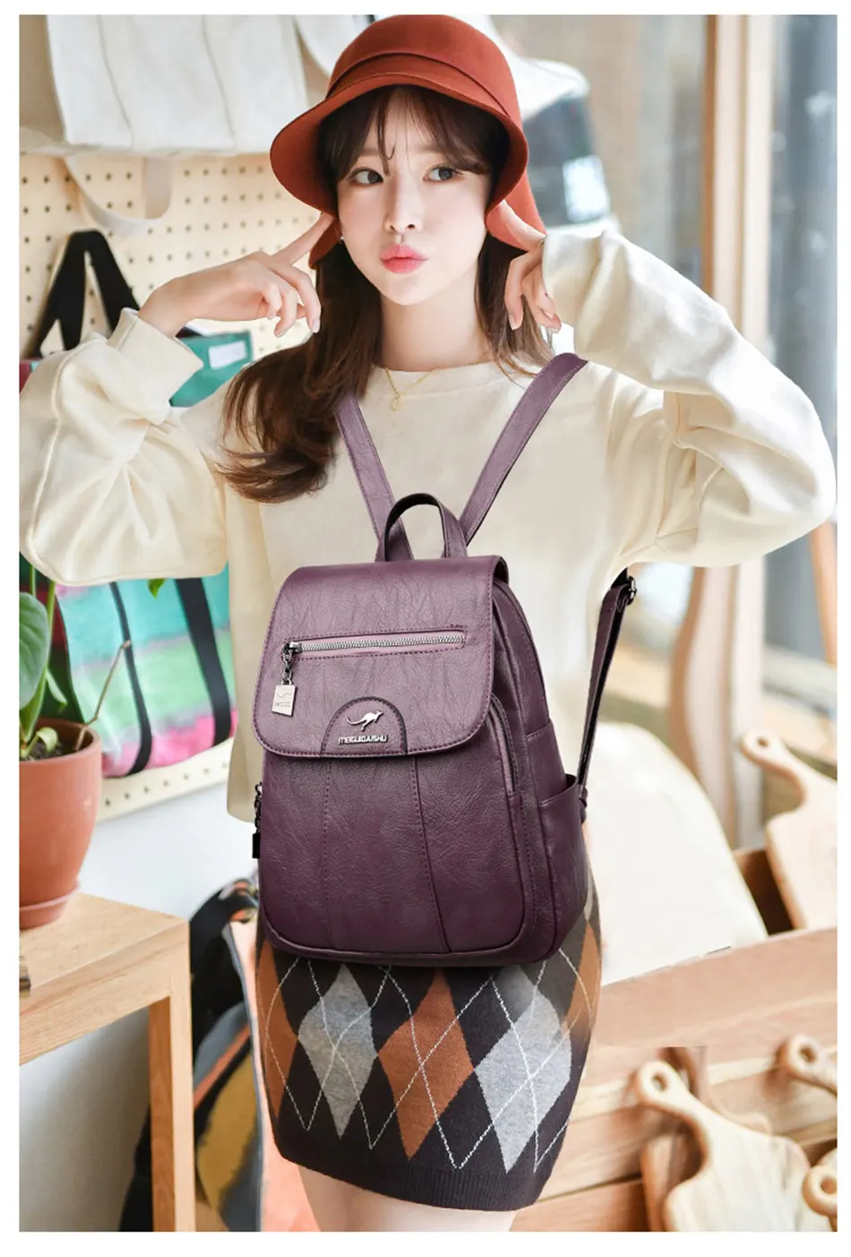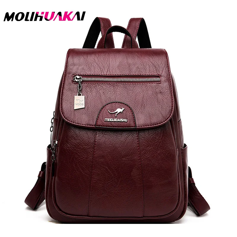2022 женские кожаные рюкзаки, высокое качество, Женский винтажный р...