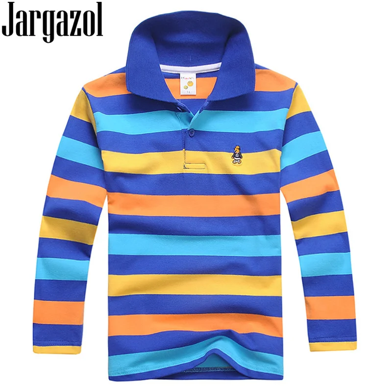 Jargazolрубашки поло для мальчиков осенние Топы с длинными рукавами для маленьких мальчиков, хлопковые спортивные рубашки-поло для подростков, Модные полосатые детские наряды