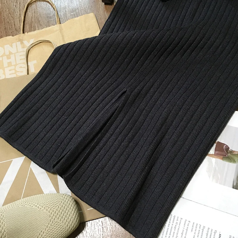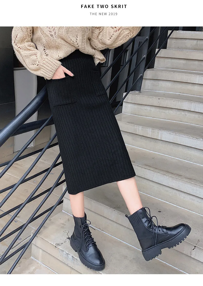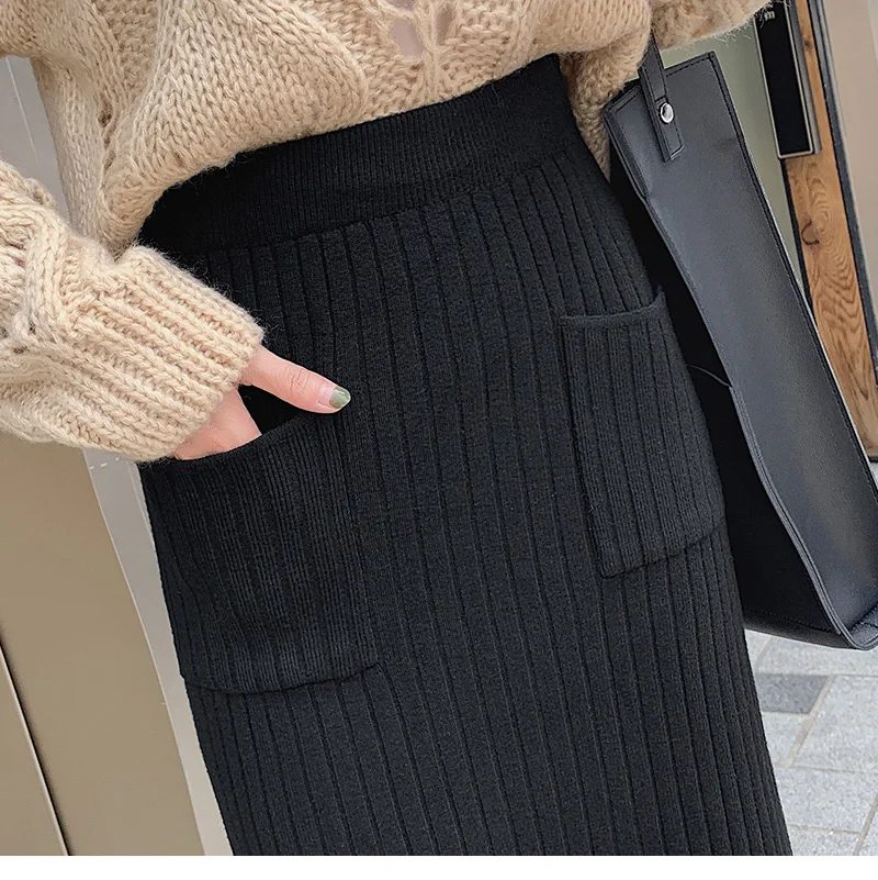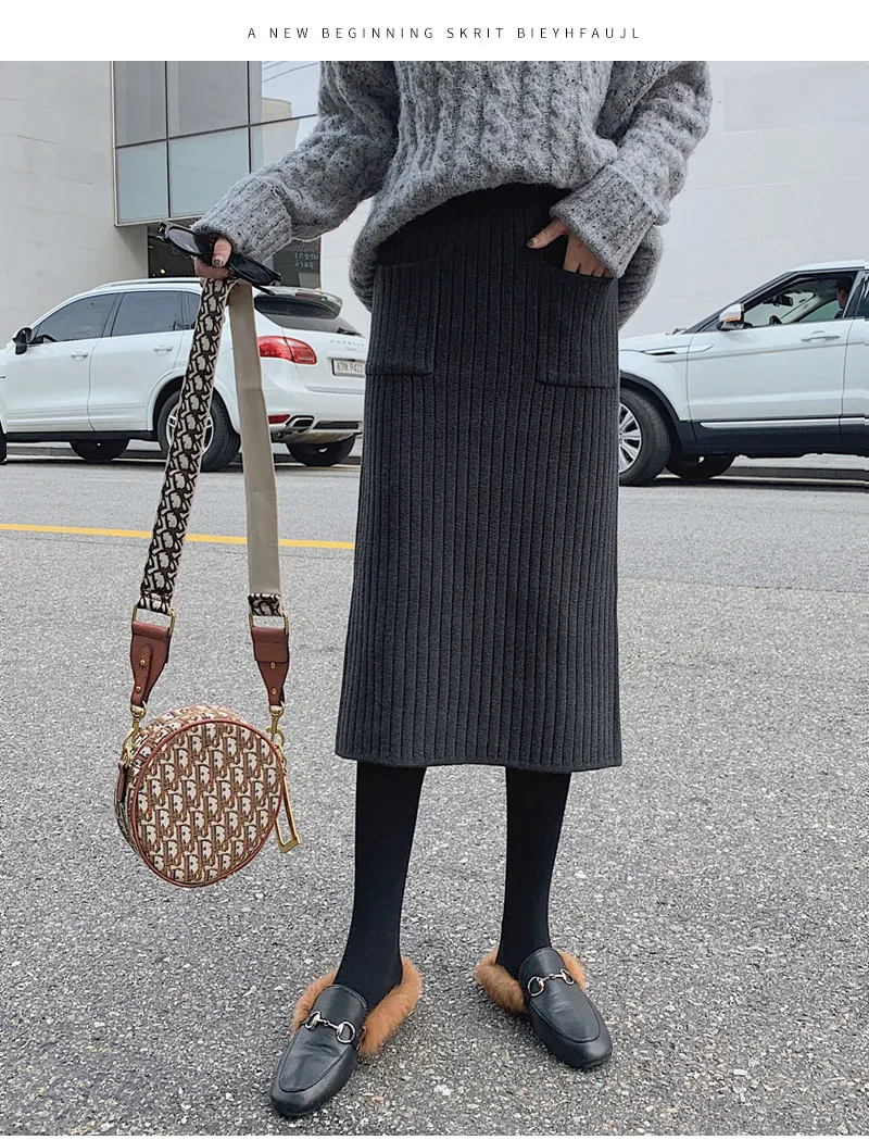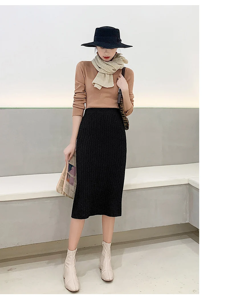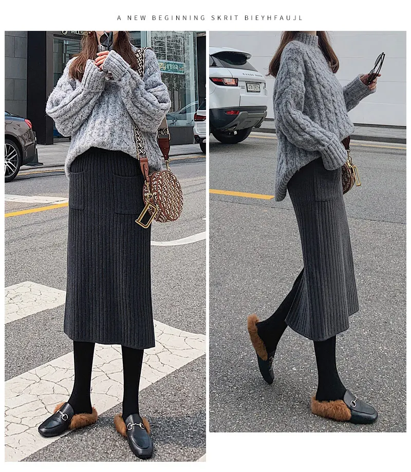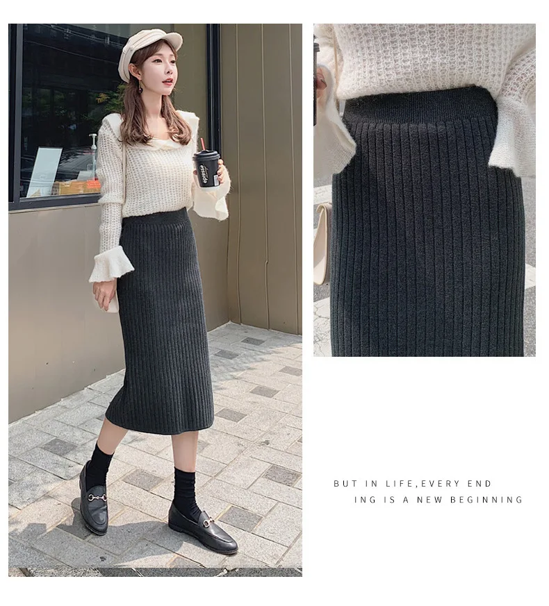 BIVIGAOS Осень-зима 2019 Новые вязаные юбки для женщин высокая талия миди тонкая юбка-карандаш модная эластичная длинная с разрезом облегающая юбка женская юбка теплая юбка зимняя юбки женские осень зима