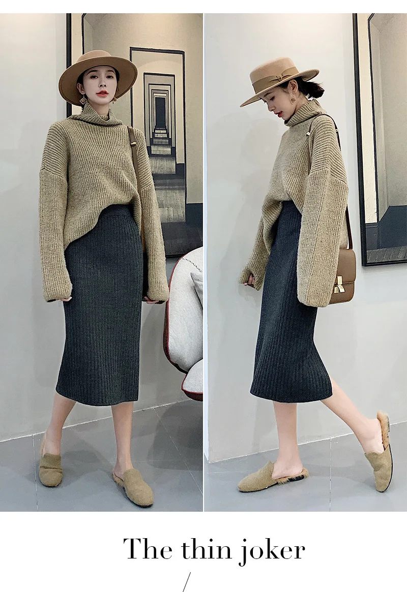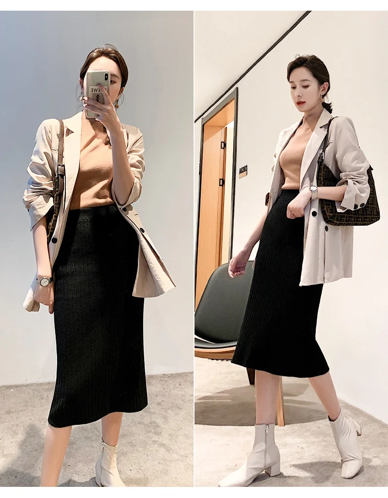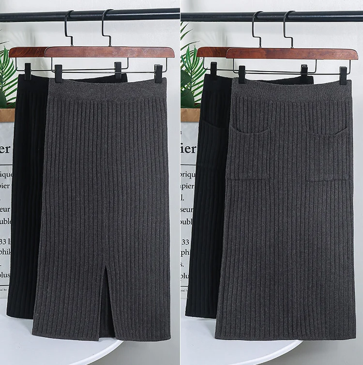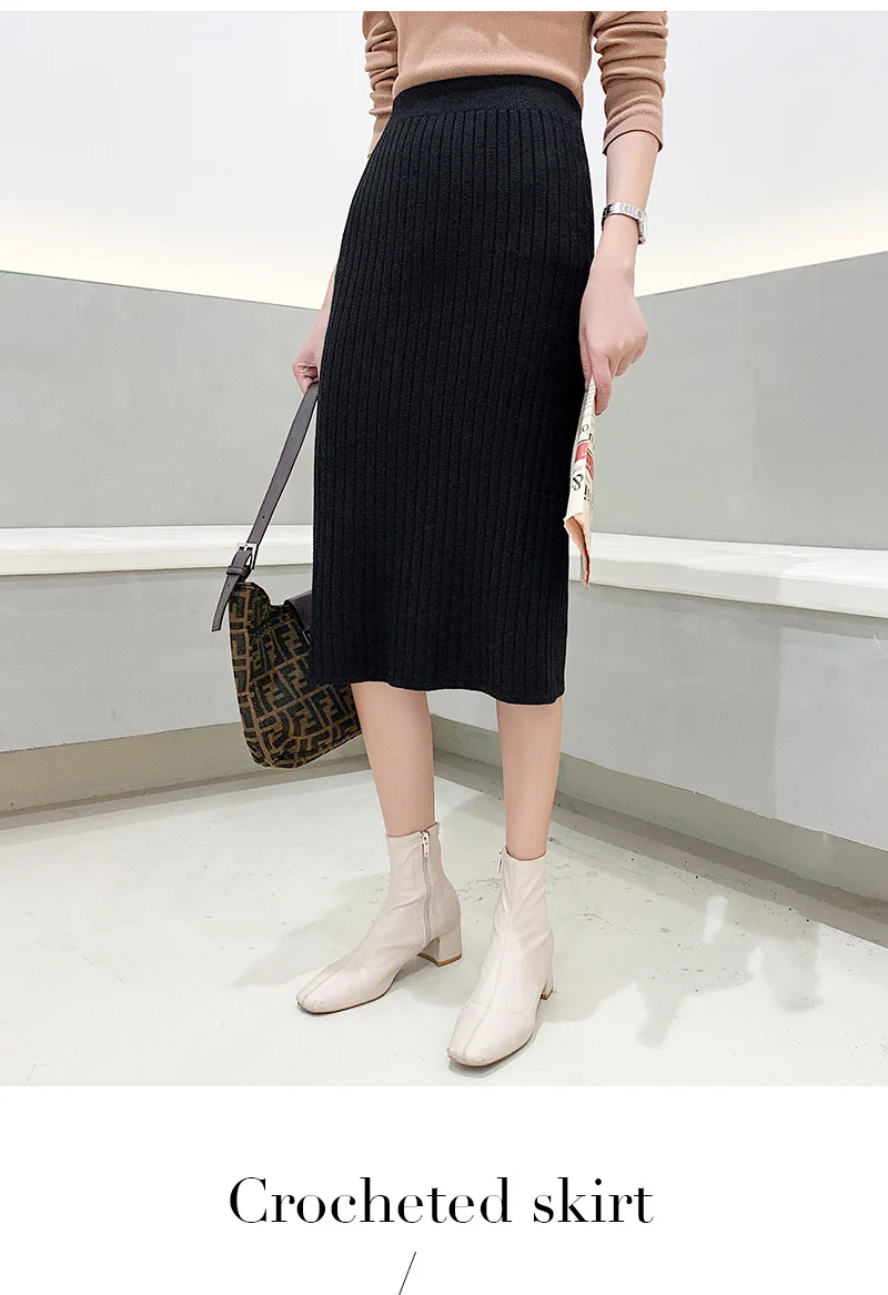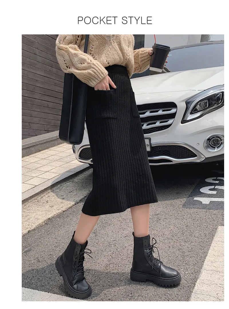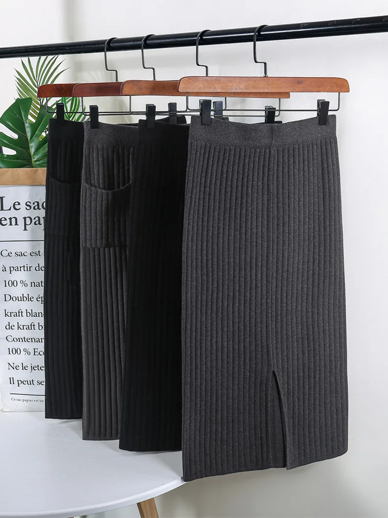 BIVIGAOS Осень-зима 2019 Новые вязаные юбки для женщин высокая талия миди тонкая юбка-карандаш модная эластичная длинная с разрезом облегающая юбка женская юбка теплая юбка зимняя юбки женские осень зима