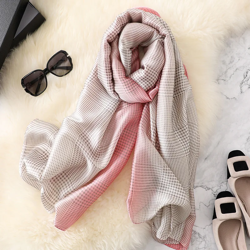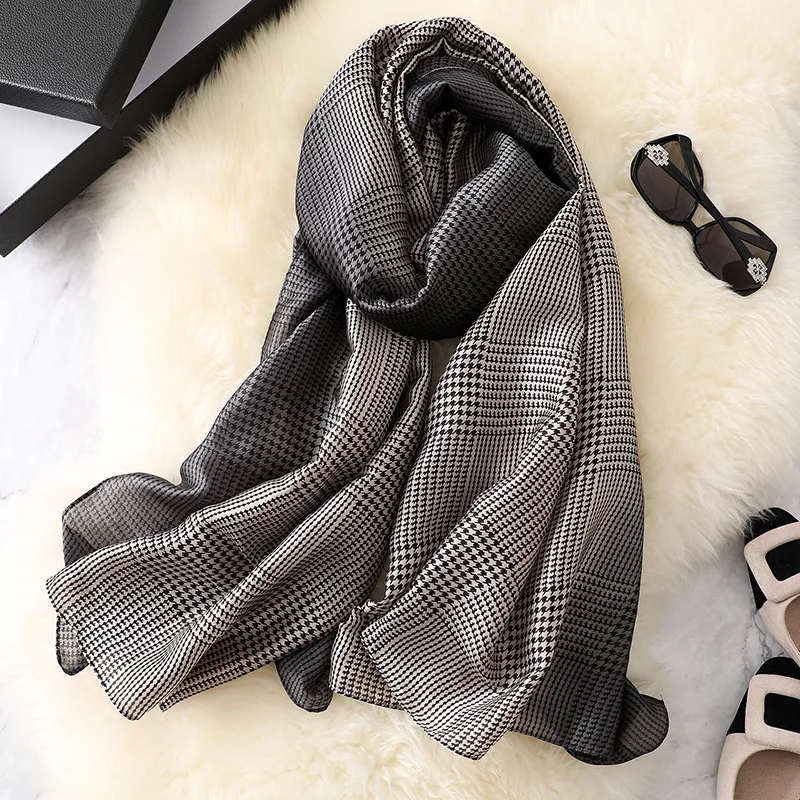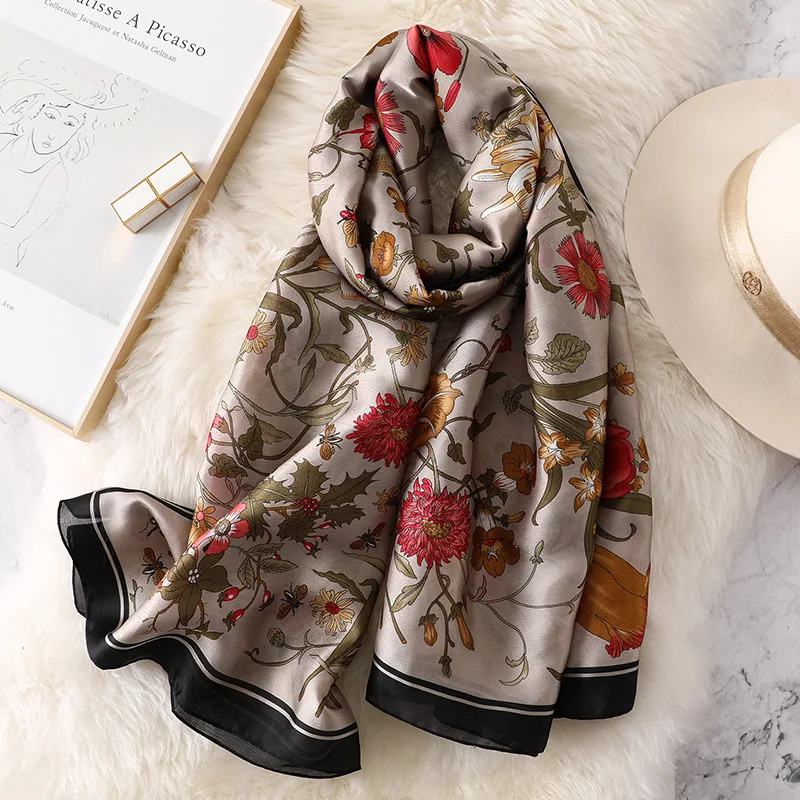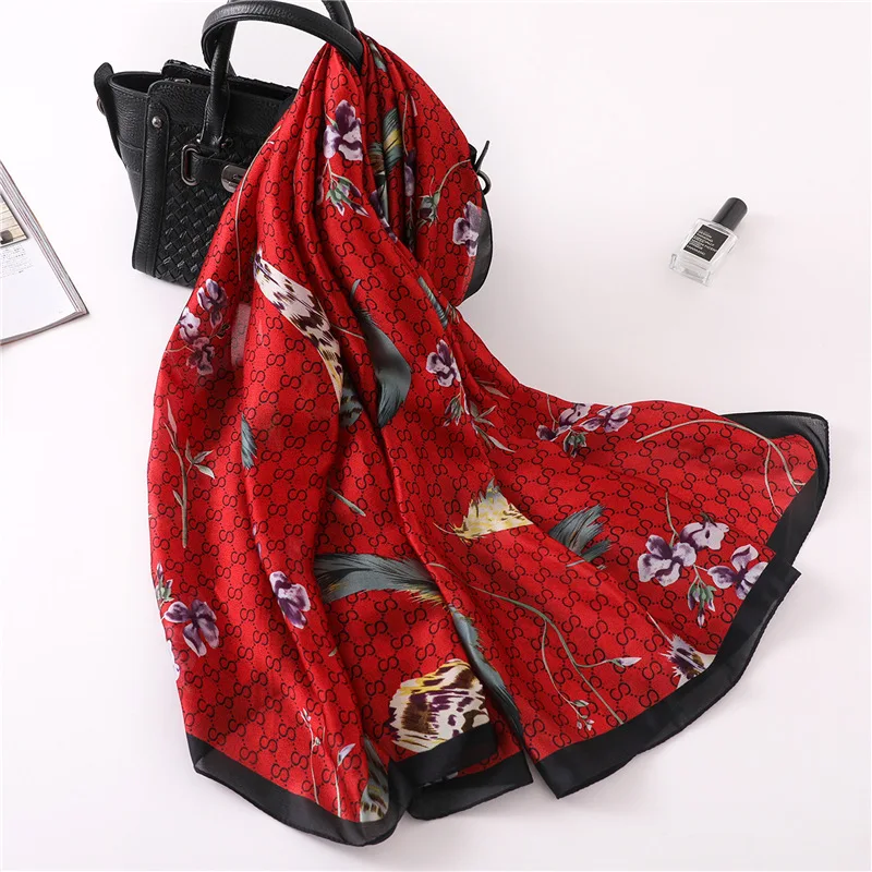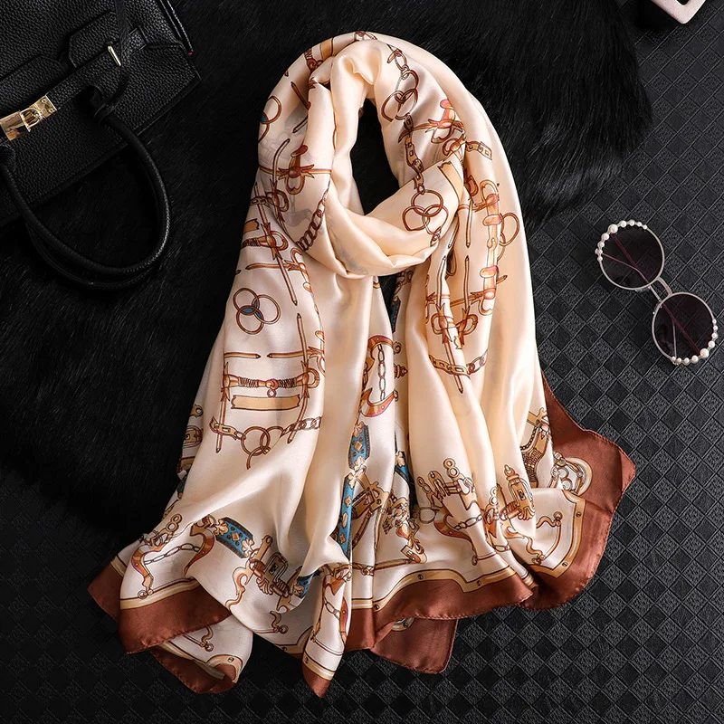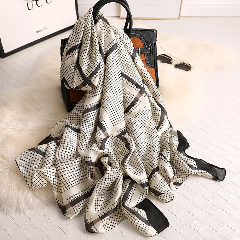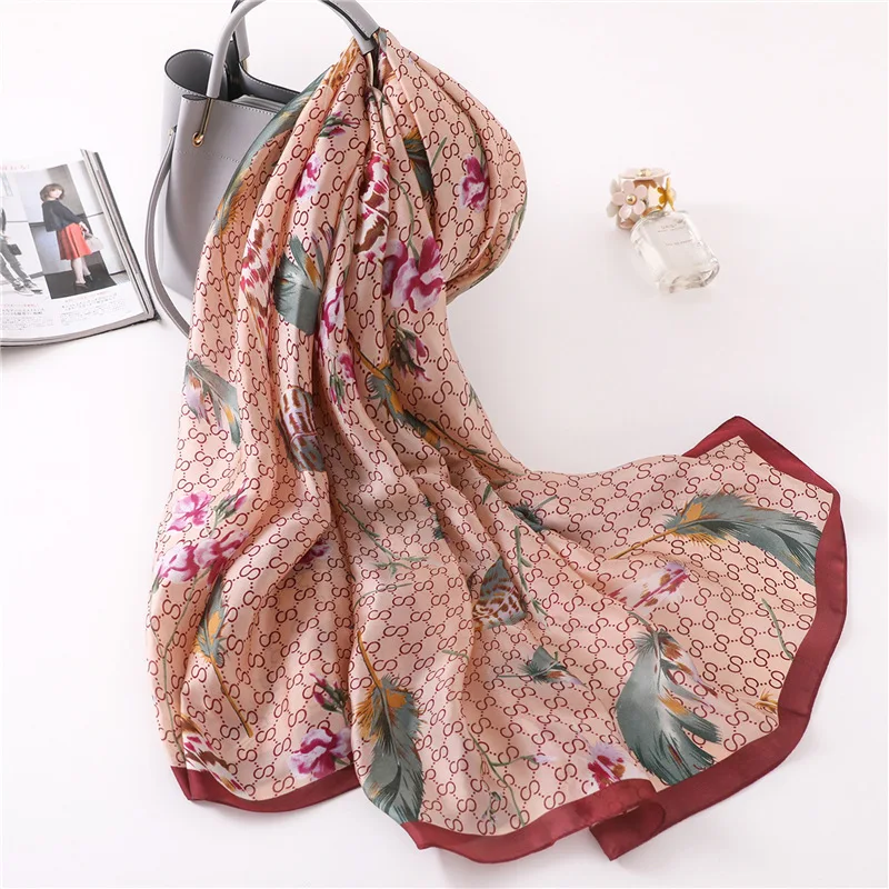 Женский шарф с модным принтом, шелковый шарф, шаль и обертывания, мягкий шарф хиджаб, для пляжа, 2019