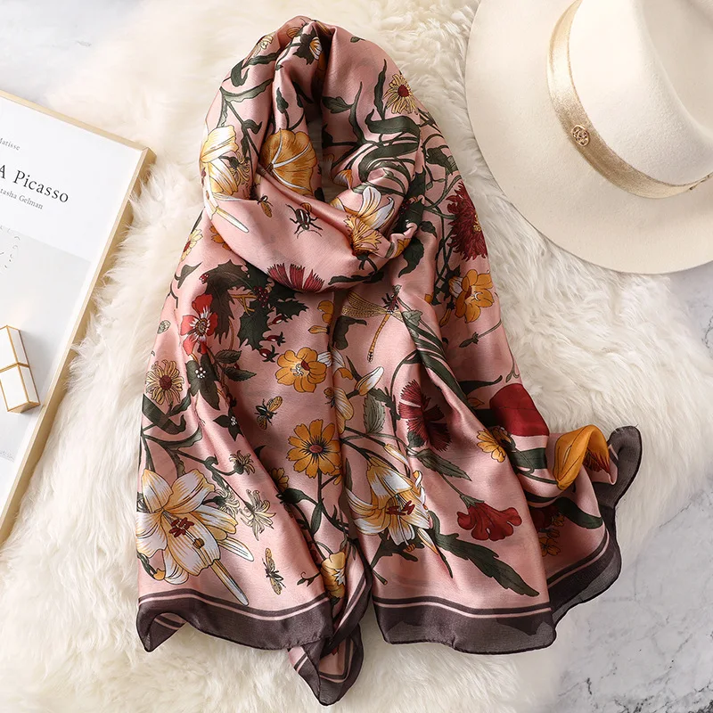 Дизайнерский женский шелковый шарф, модные шарфы с принтом, лето 2022, шали и палантины, мягкая Пашмина, бандана, Женская пляжная шаль