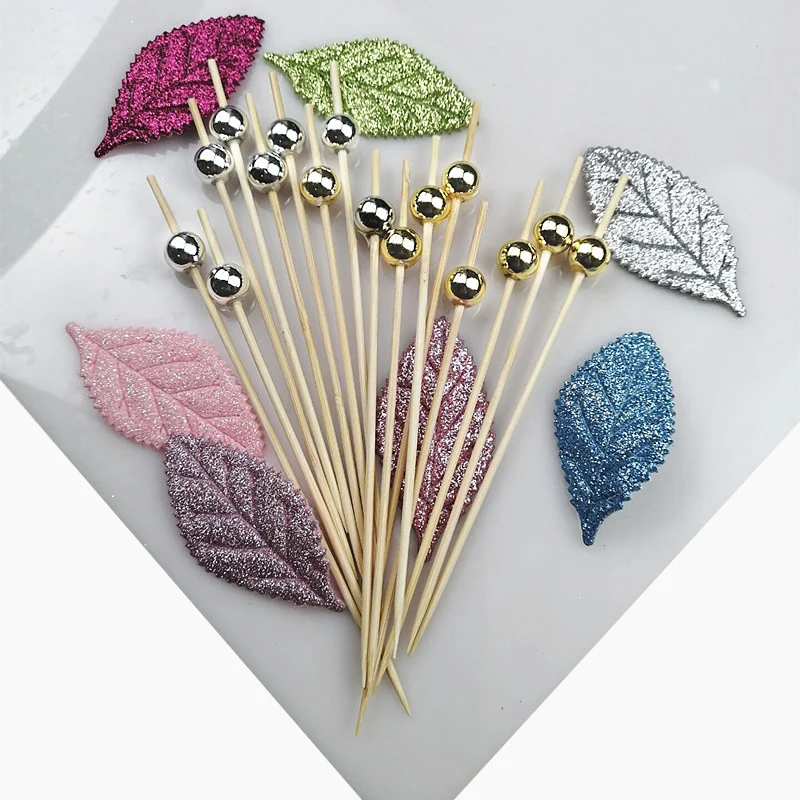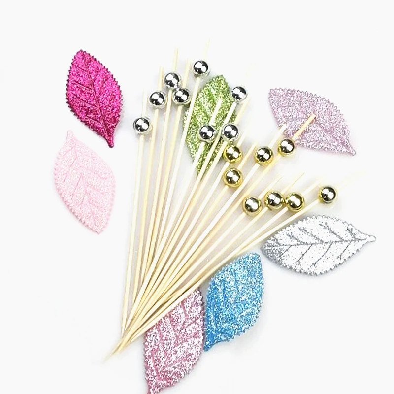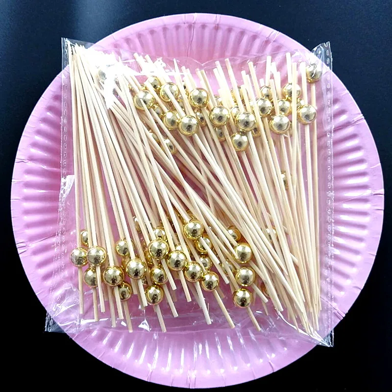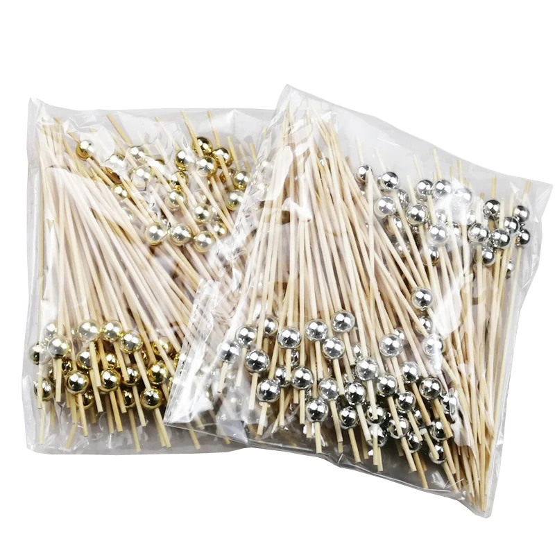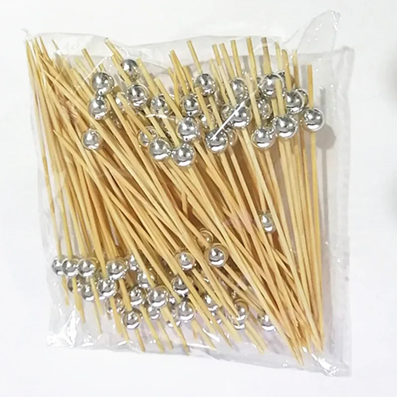 XUNZHE 100 предмета в комплекте на высоком каблуке 12 см с серебряными бусинами фрукты знак коктейль Десертная Вилка деревянные фруктовые закуска зубочистки шарик фрукты деревянная зубочистка