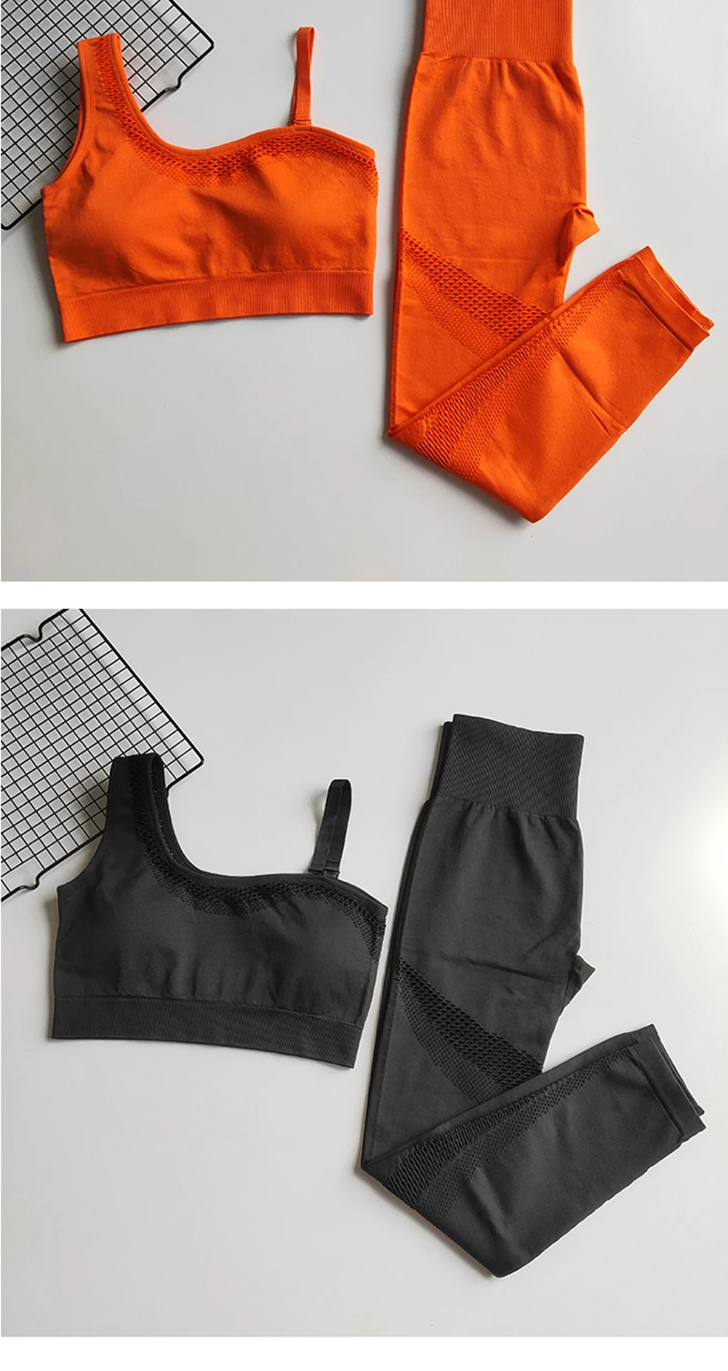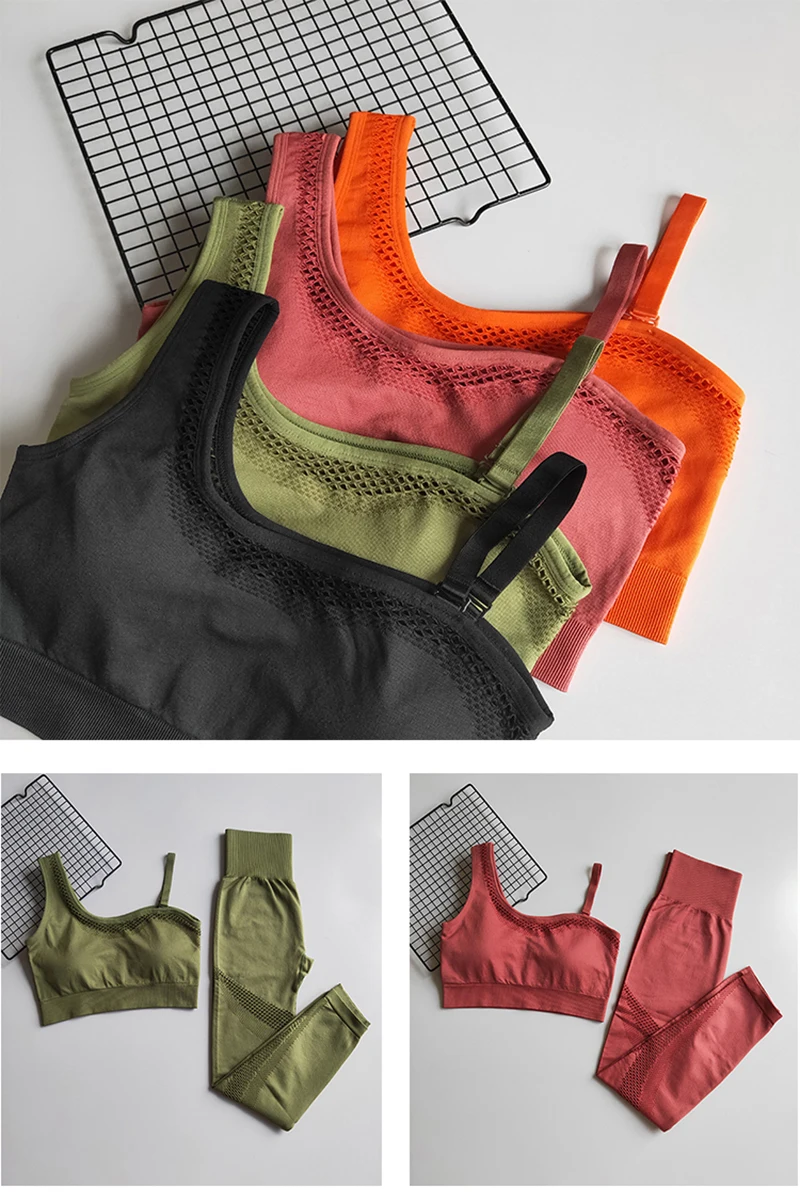 Бесшовный комплект для йоги, женская одежда для спортзала, спортивная одежда, Леггинсы для йоги с вырезами, мягкий спортивный бюстгальтер на одно плечо, 2 шт., одежда для тренировок