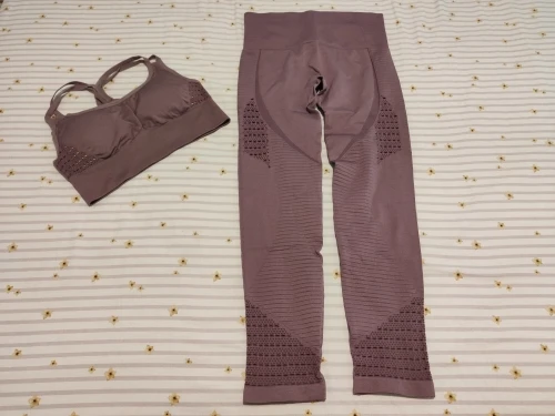 Красивый костюм,соответствует фото и описанию.Обратите внимание на состав,так как это 100% синтетика,тренироваться в нём красиво,но не комфортно,особенно,если в душном зале/комнате,кожа не дышит. У меня обычно вверх S,низ М,решила взять костюм S по отзывам,сидит очень-очень плотно,советую ознакомиться с сеткой размеров и если у вас то М,то S какая-то одежда,берите М ;)
