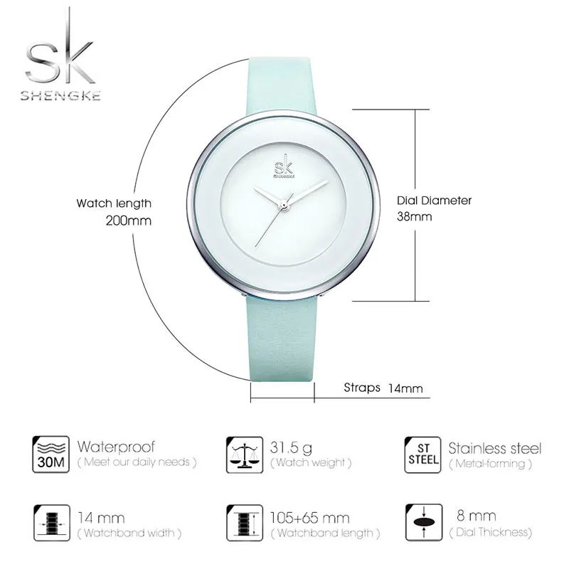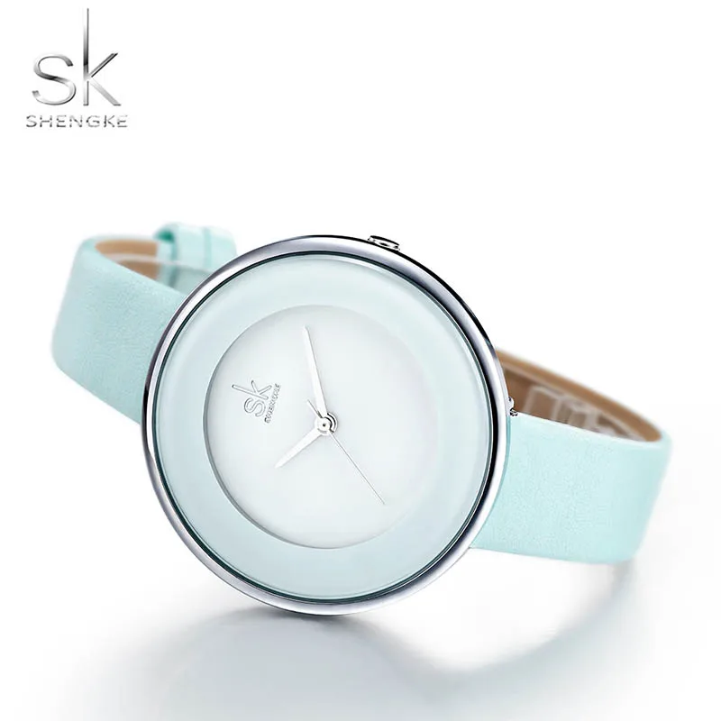 Женские кварцевые часы SHENGKE, с кожаной пряжкой, круглым цифербла...