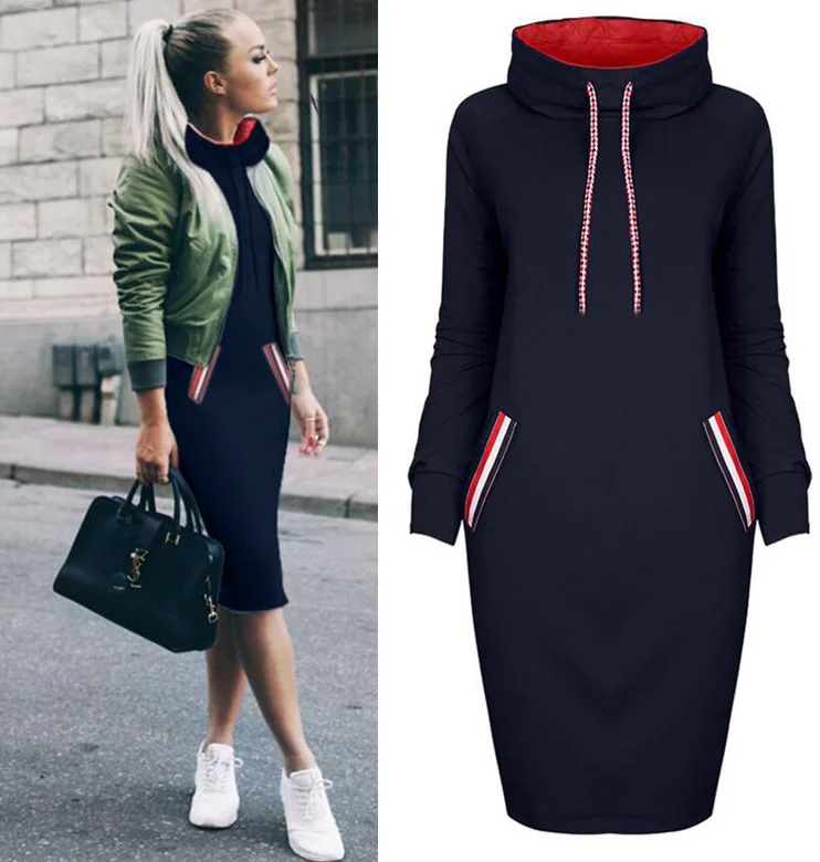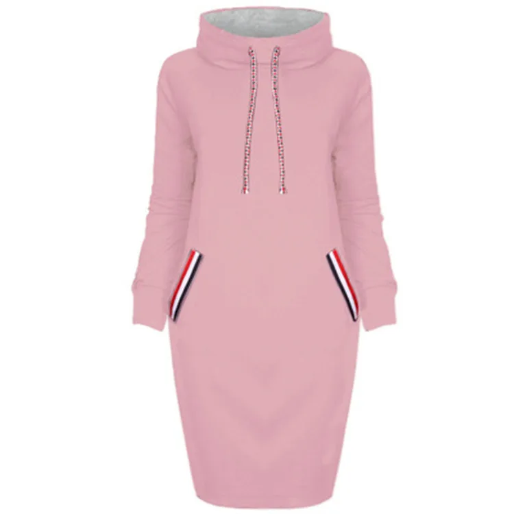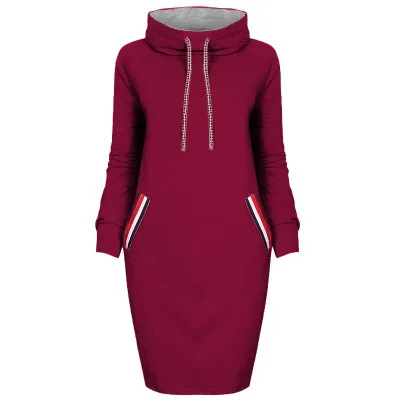 Женское теплое платье-свитшот с длинным рукавом и высоким воротником