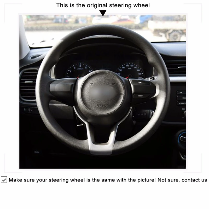 Сделай Сам сшитый вручную черный чехол рулевого колеса автомобиля из искусственной кожи для Kia Rio 2017-2019 Rio5 2019 K2 2017-2019 Picanto Morning