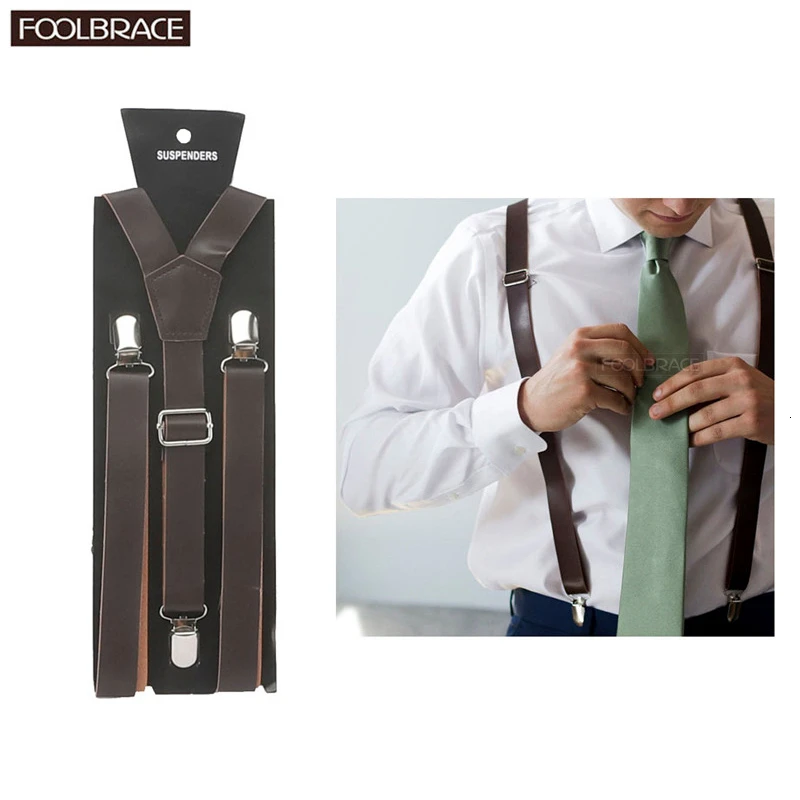 2,5 см Ширина моды для мужчин кожаный пояс для подтяжек искусственная кожа Clip-on женские подтяжки, одежда на свадебную вечеринку, на возраст от двух до семи лет