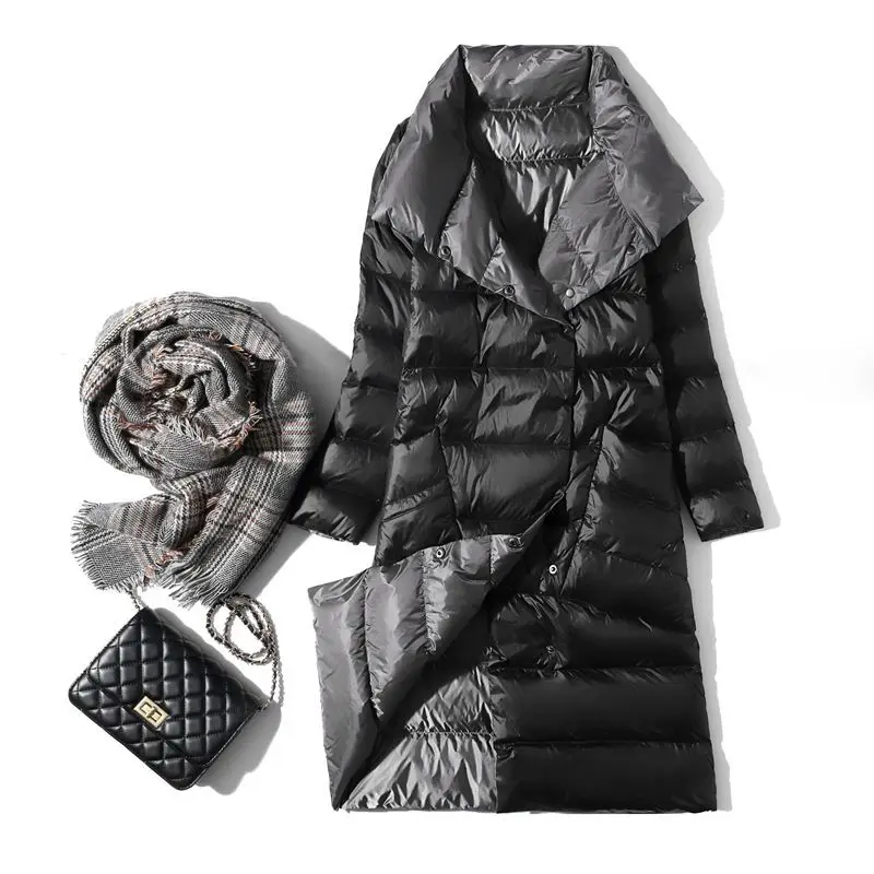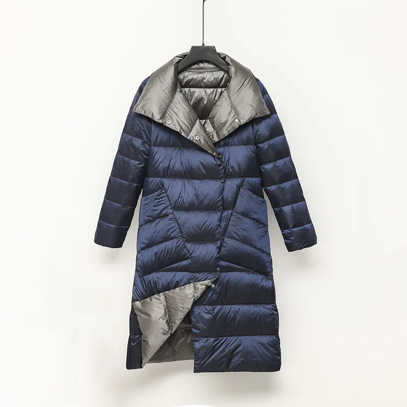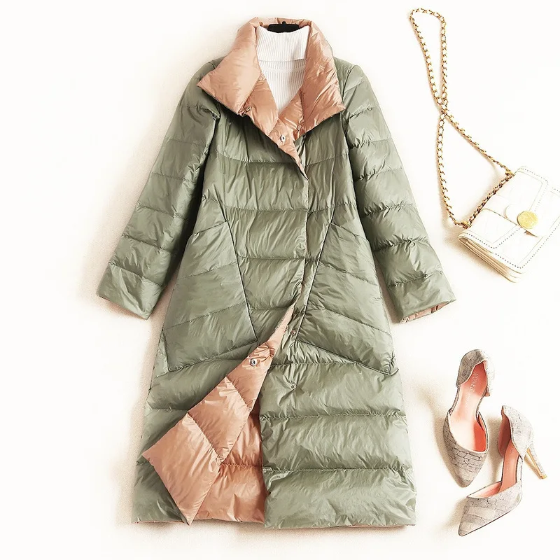 Куртка женская двухсторонняя на утином пуху, с высоким воротником, теплая