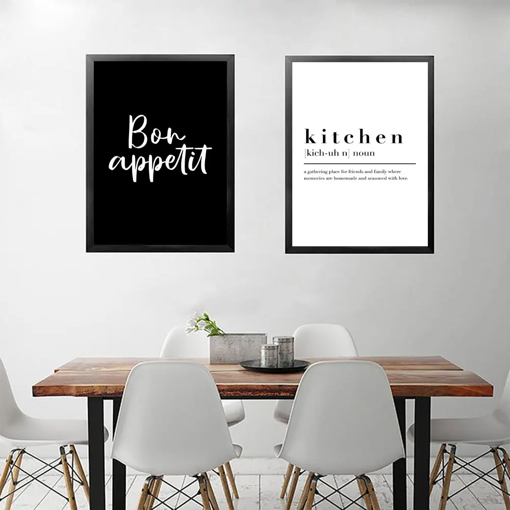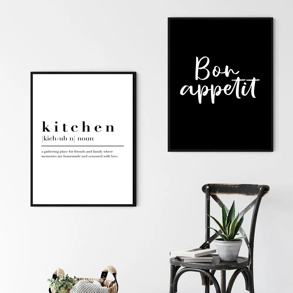 Настенные художественные принты для кухни, столовой, декоративные картины, постеры в скандинавском стиле черного и белого цветов, популярные цитаты, настенные художественные картины на холсте