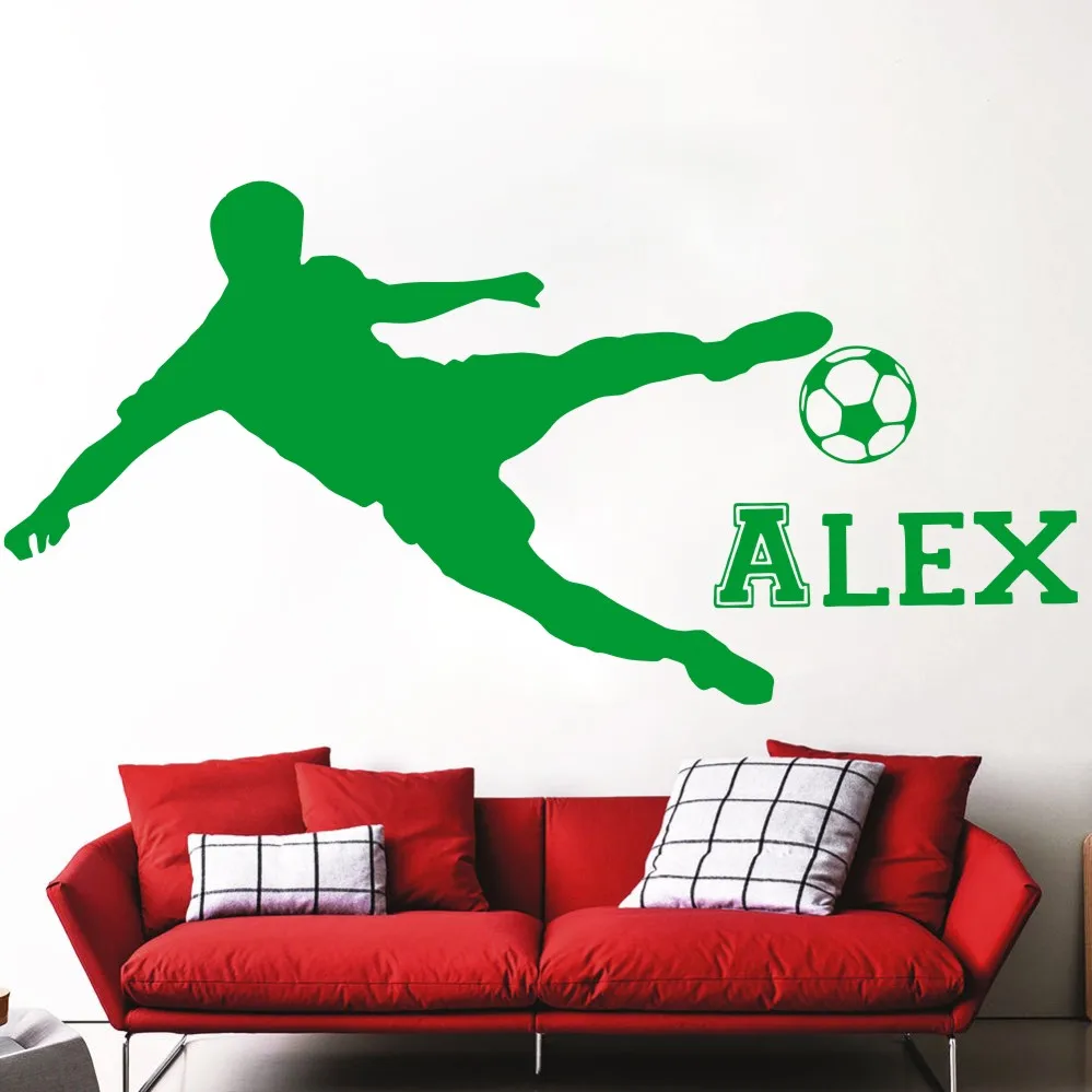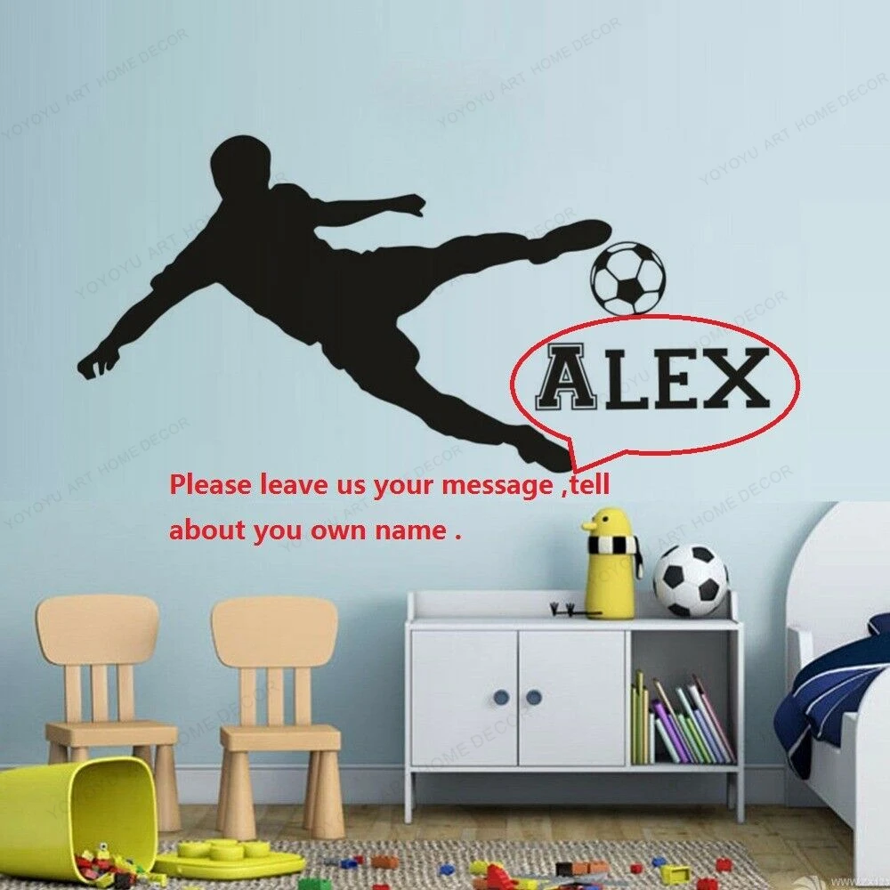 Съемная Настенная Наклейка для комнаты для мальчиков, наклейка на стену для комнаты с именем футбольного игрока, Виниловая наклейка с именем персонализированного футбола s WU215