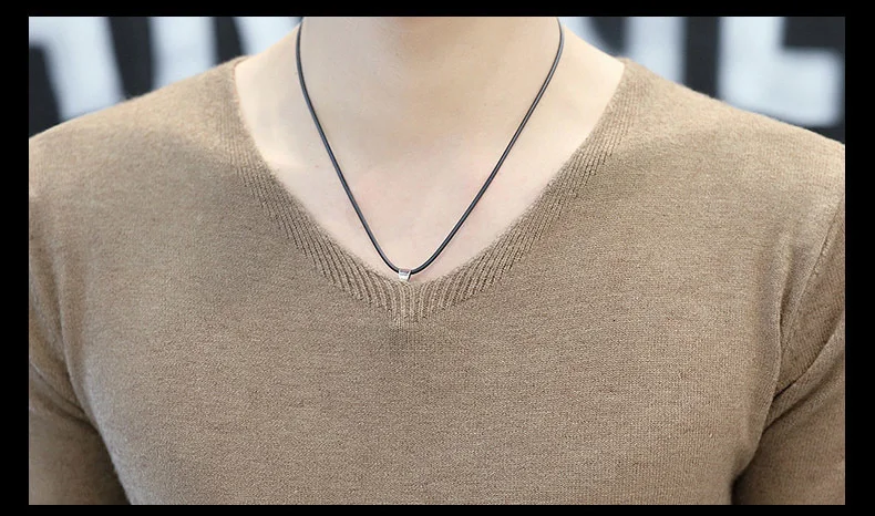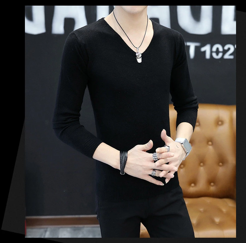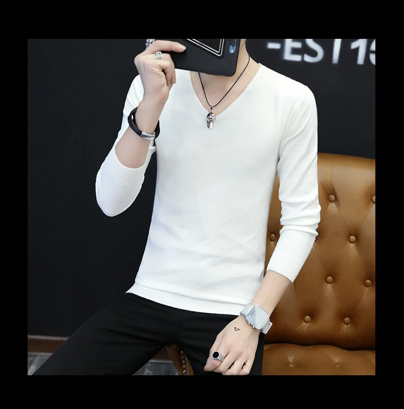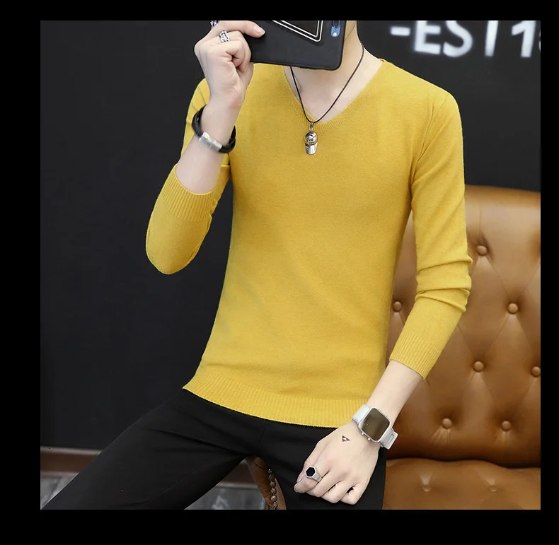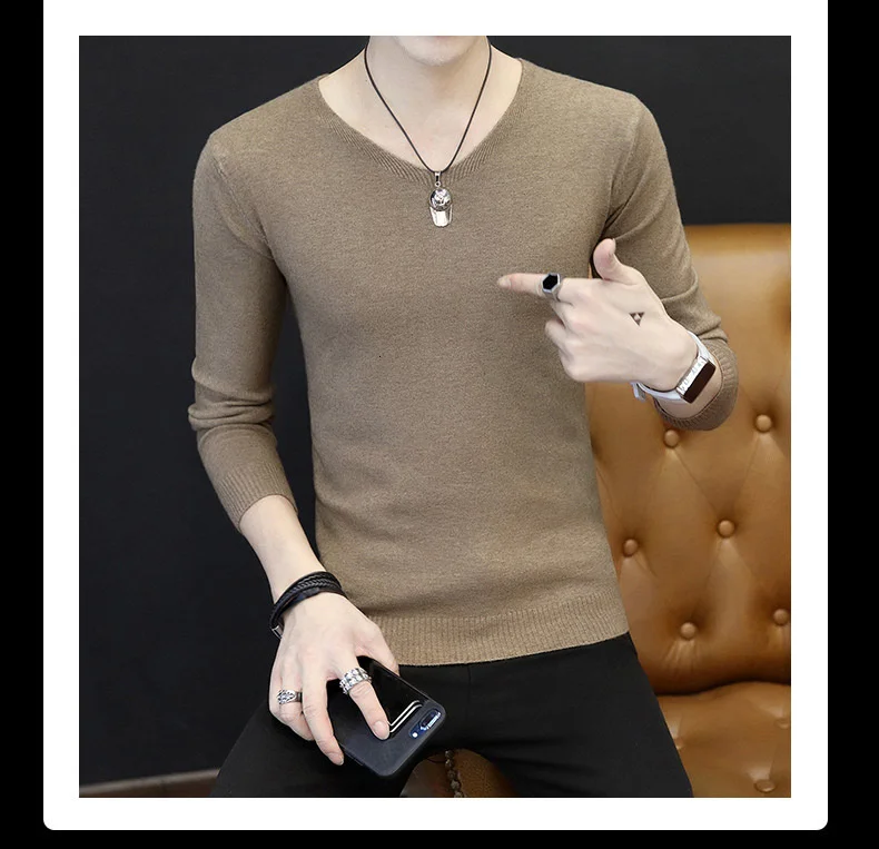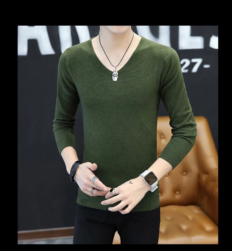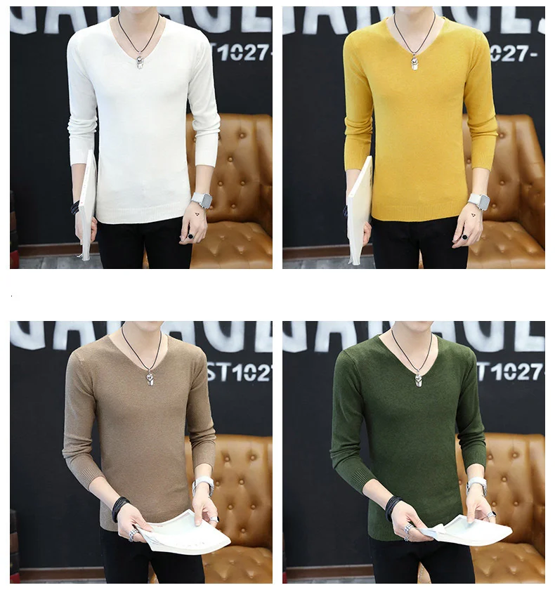 Мужской облегающий свитер с v-образным вырезом, однотонный трикотажный пуловер с длинными рукавами, 6 цветов, осень 2019