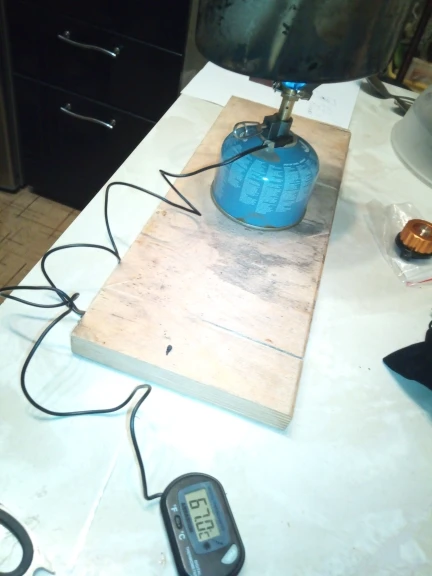 Отличная маленькая плита. Всего 50 граммов. Я отварил 800 мл воды (в помещении с крышкой) в течение 3,5 минут. Это использовало до 13 граммов топлива.