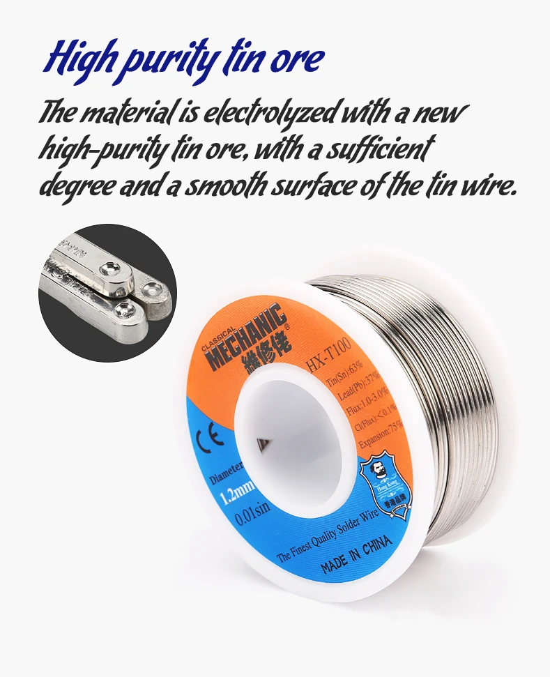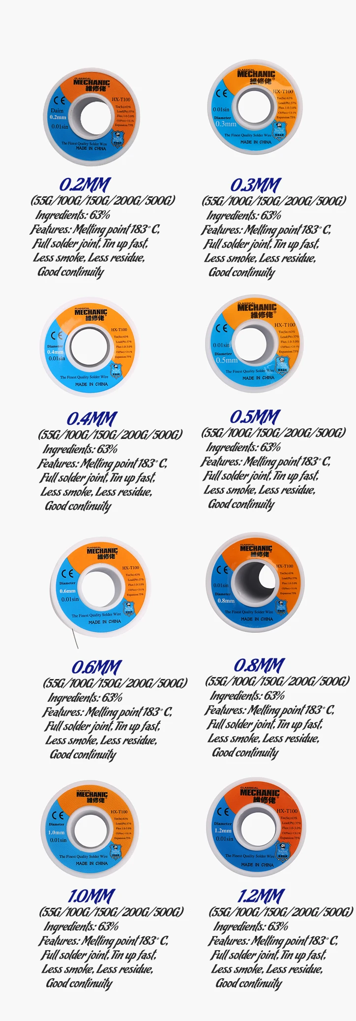 Припой с канифольным ядром MECHANIC 55G, проволока 0,3 0,4 0,5 0,6 0,8 1,0 1,2 мм 183 с низкой температурой плавления для сварки, пайки, Оловянная проволока, инструменты BGA