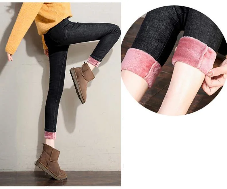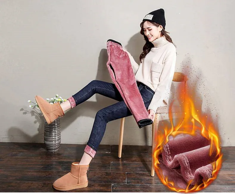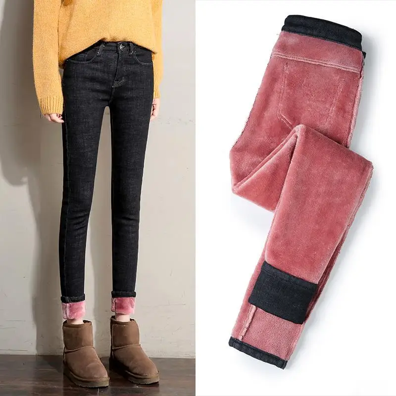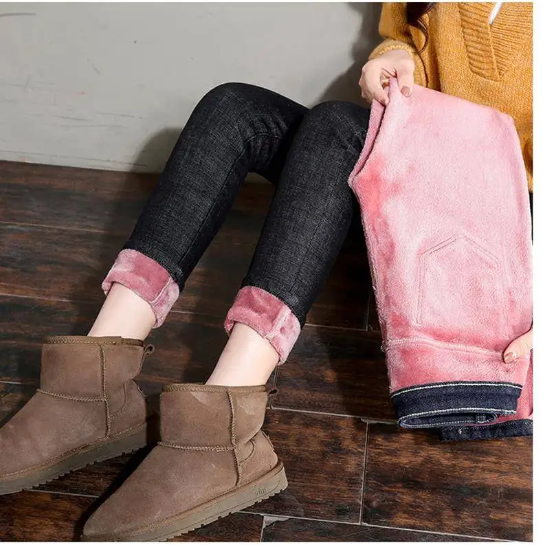Зимние теплые джинсы для женщин, эластичные джинсы, женские брюки, утепленные бархатные плотные утепленные джинсы с флисовой подкладкой, 2020